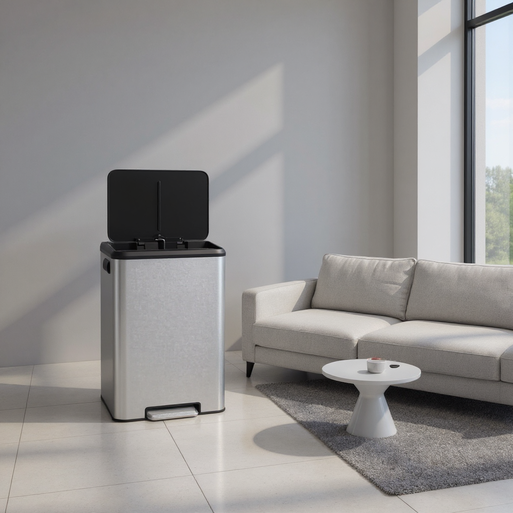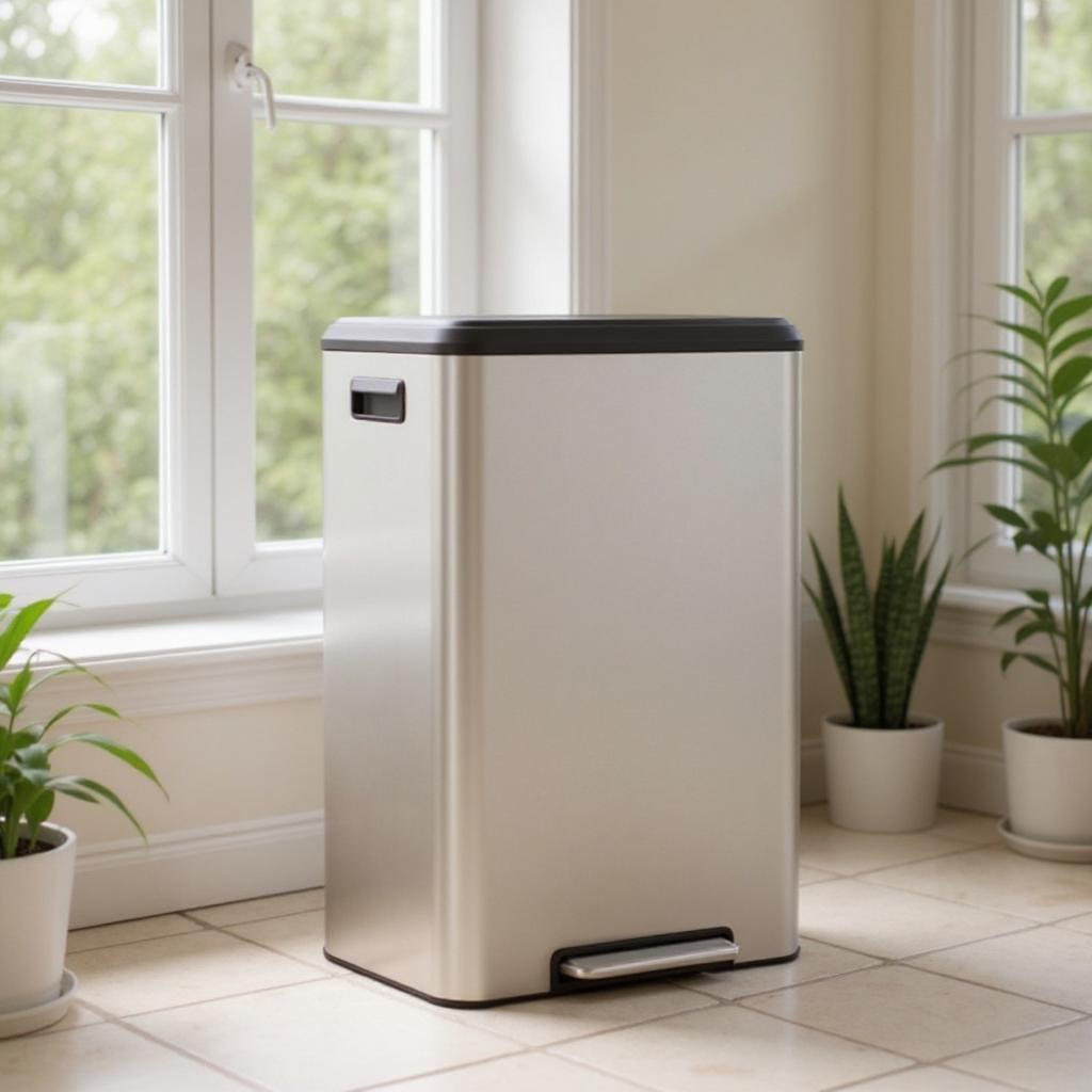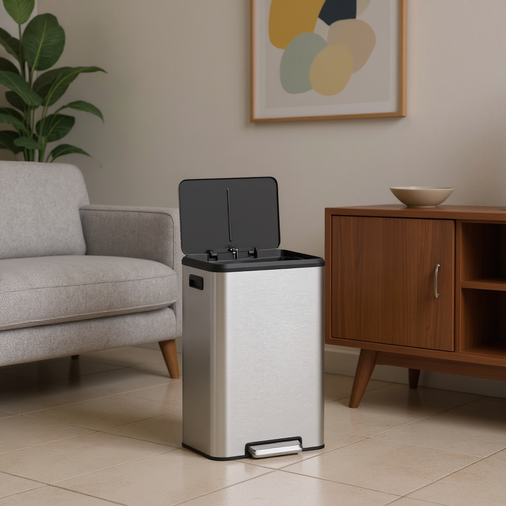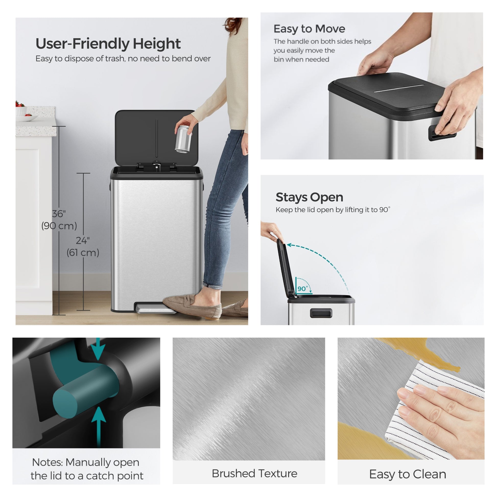 10.5-Gallon Step Kitchen Trash Can, Soft-Close Stay-Open Lid, Inner Bucket, Wide Pedal, Compact Design, Stainless Steel,Silver