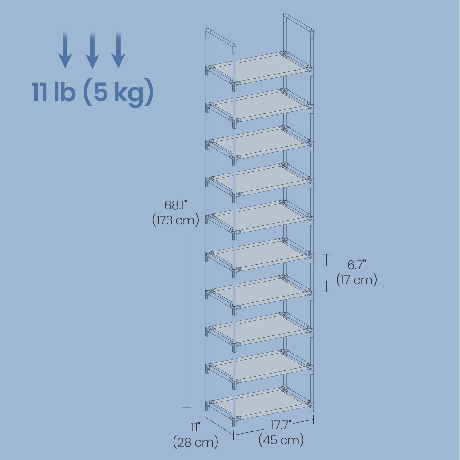 Space-Saving Superhero – Its slim 11” depth tucks anywhere yet holds 10 tiers of shoes—perfect for tight spaces.