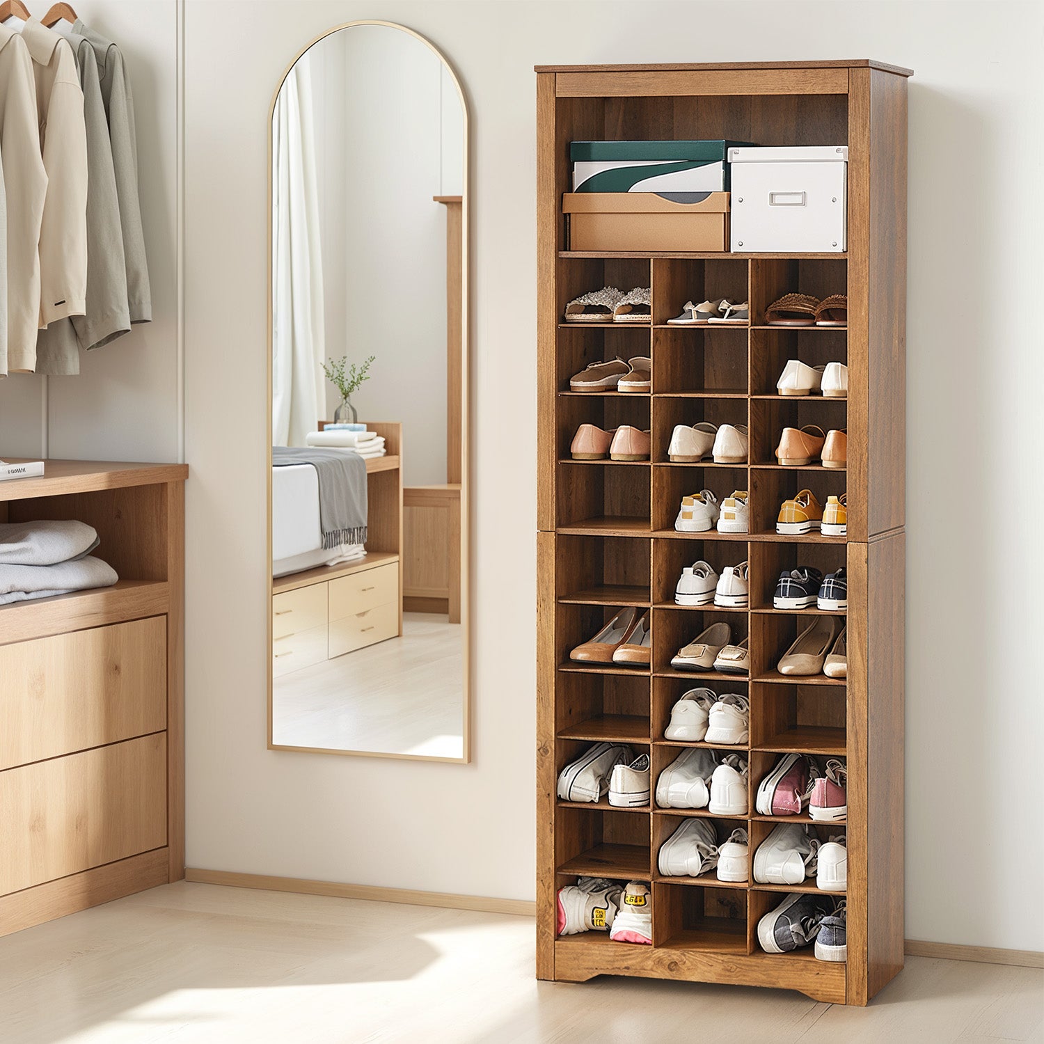 10-Tier Shoe Storage Cabinet Organizer, Tall Space-Saving Design for Entryway, Bedroom, Holds 30 Pairs, Adjustable Shelves, Rustic Walnut