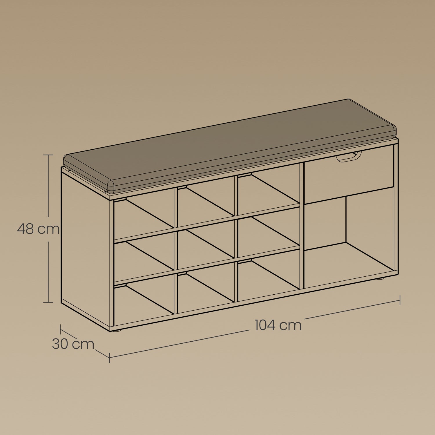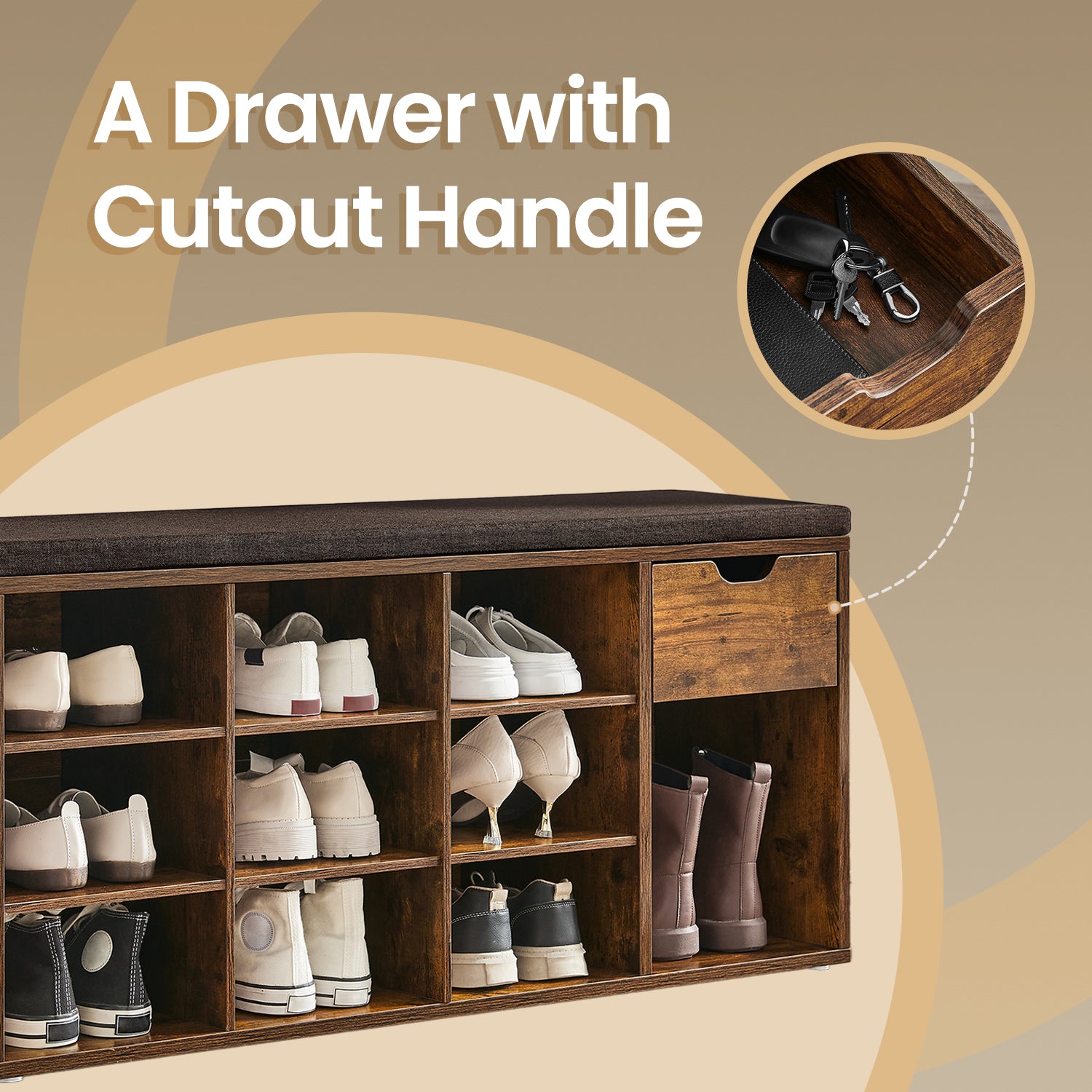 15-Compartment Shoe Bench, Storage Organizer with Removable Cushion, No-Tool Assembly Entryway Seat,Rustic Brown and Brown