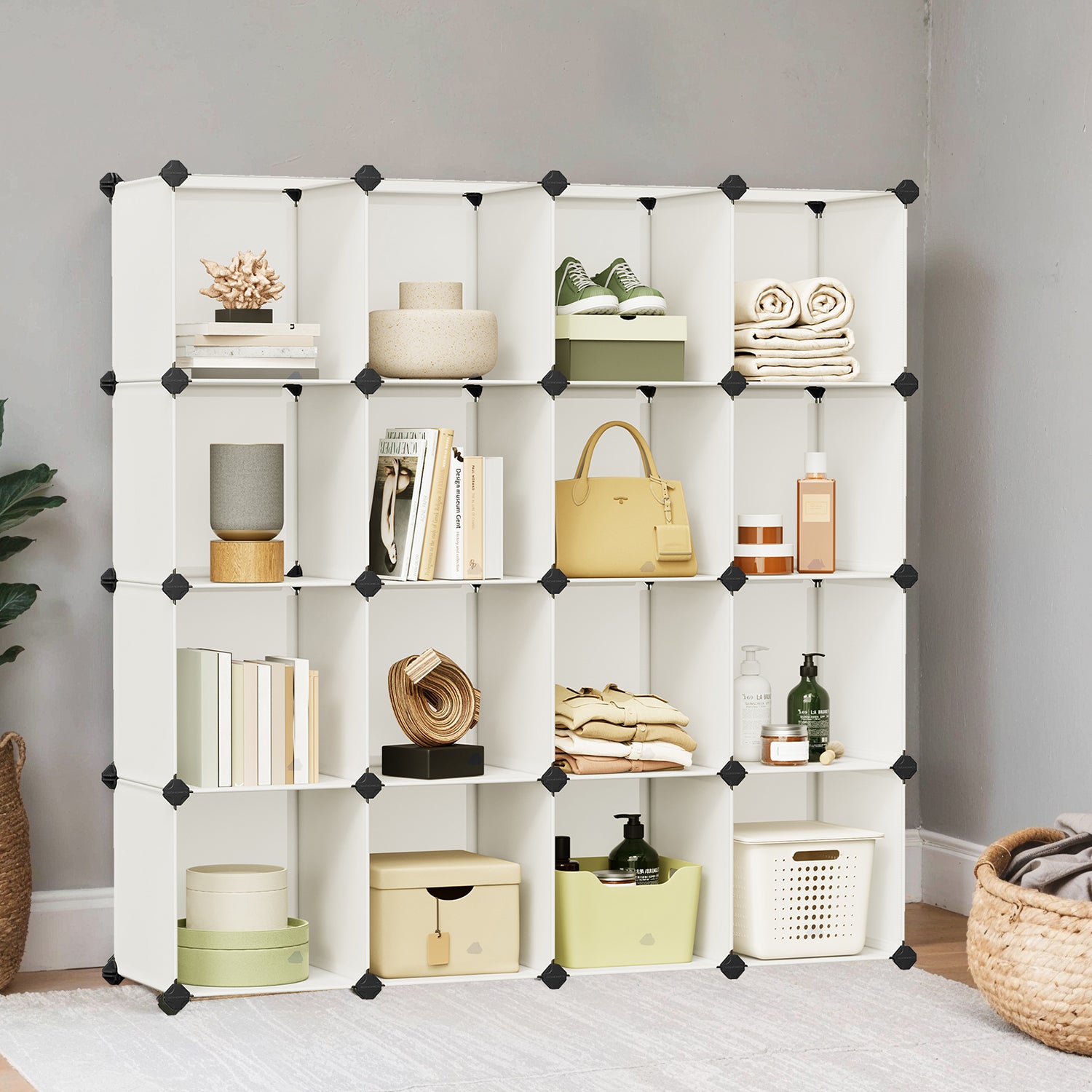 16-Cube Modular Closet System - Heavy Duty Plastic & Metal Storage Organizer, Tool-Free Assembly, Cream White