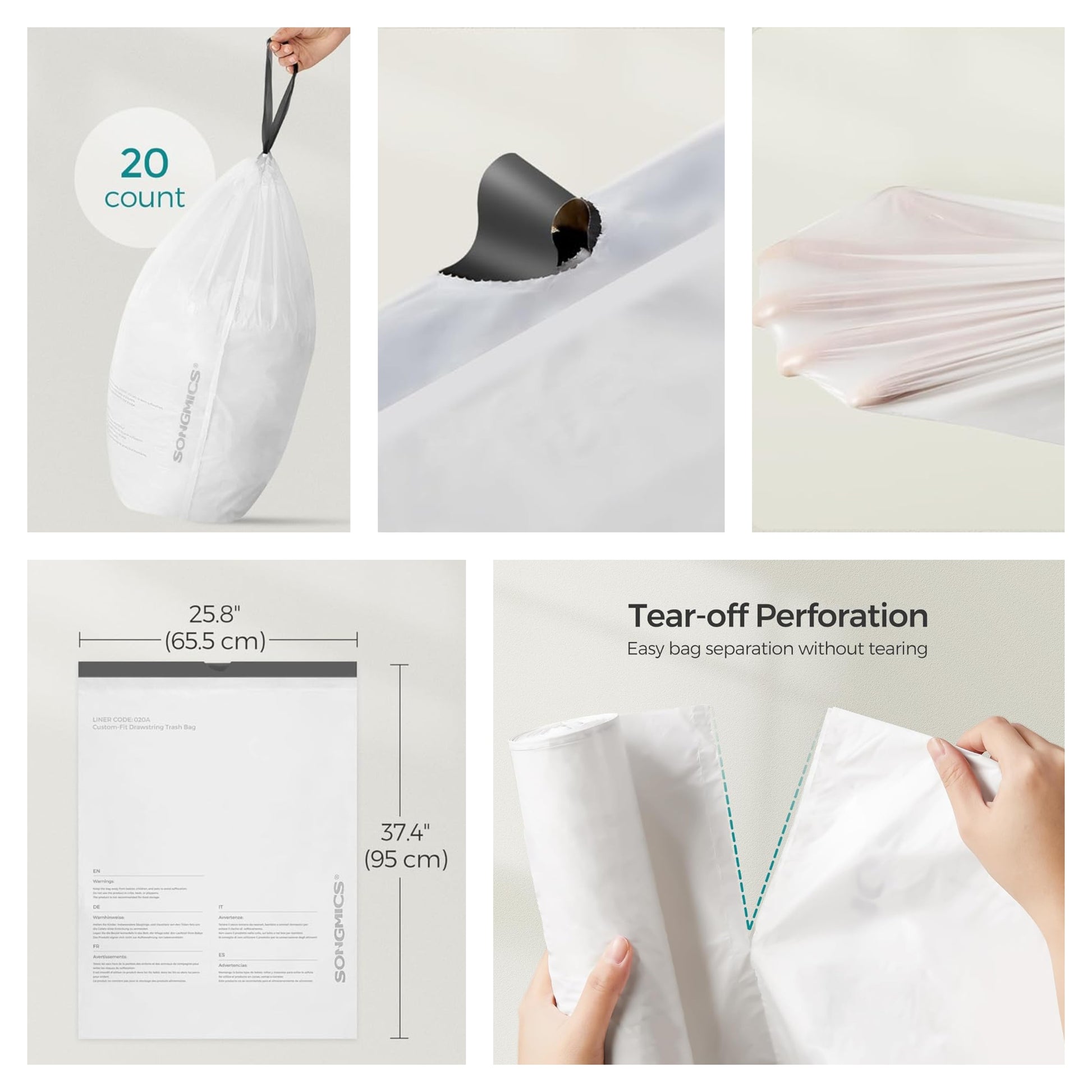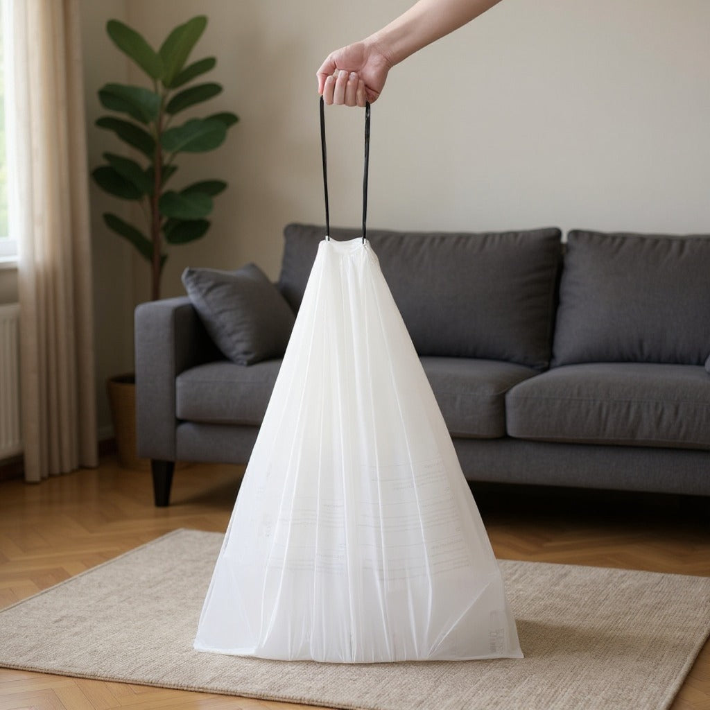 18 Gallon Heavy Duty Drawstring Trash Bags, 80 Count Kitchen Garbage Bag Liners for Large Cans, 4 Rolls, White