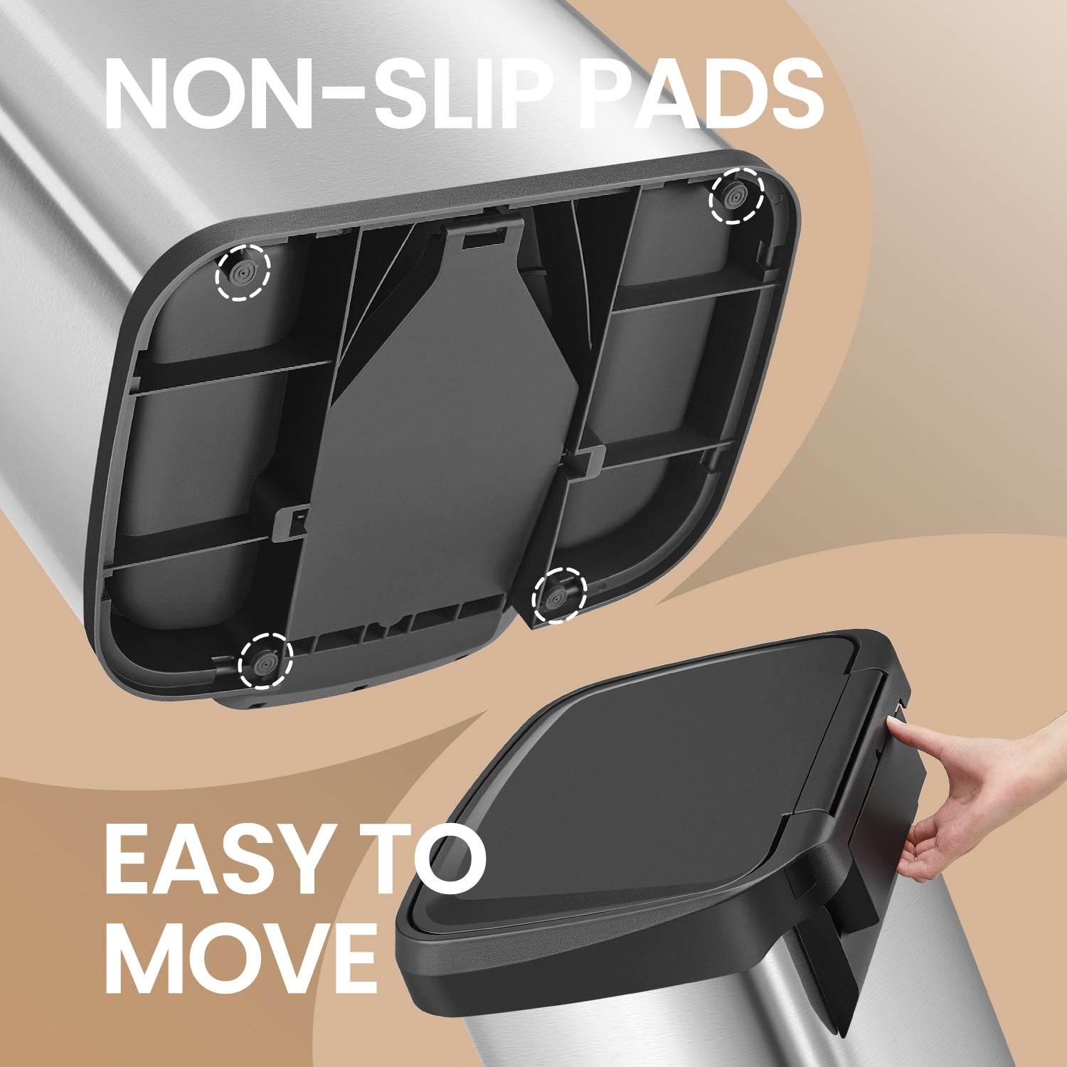 18 Gallon Stainless Steel Kitchen Trash Can, Stay-Open Lid with Step Pedal & Odor Filter, Large Capacity Bin,Silver and Black