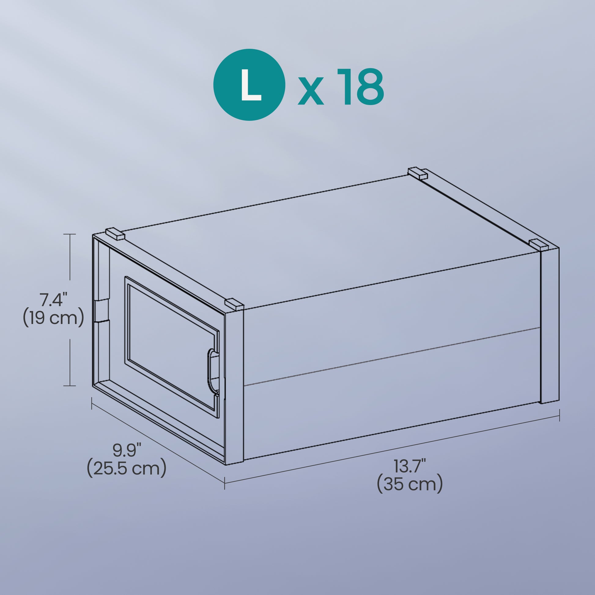 18-Pack Stackable Shoe Storage Boxes – Clear Front-Door Organizers for Sneakers, Heels & Flats, Fits Up to Size 13, Transparent and White