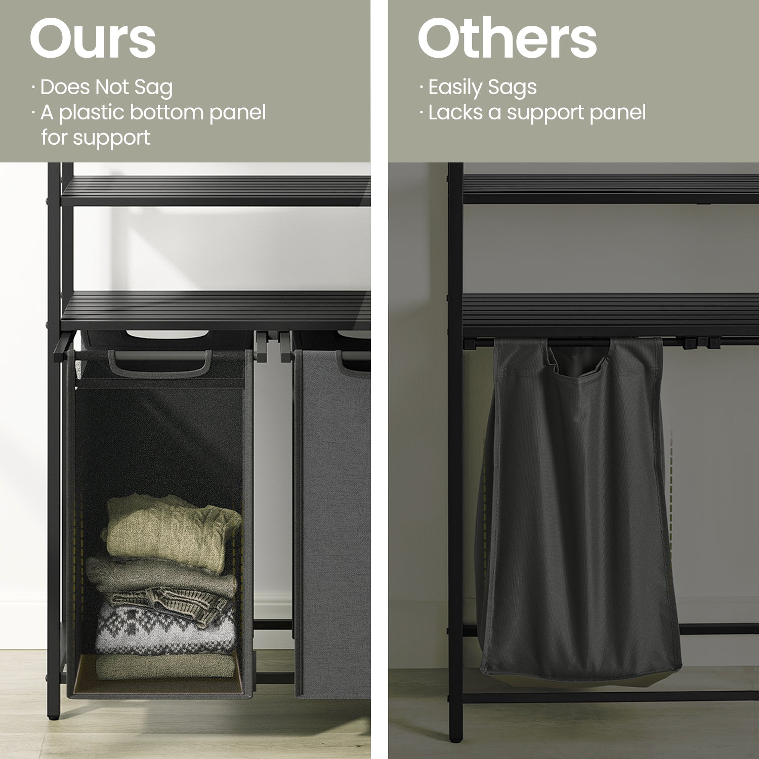 2-Bin Laundry Sorter with Shelves, 24.2 Gallon Capacity, Removable Bags & Steel Frame, for Home Organization, Black and Gray