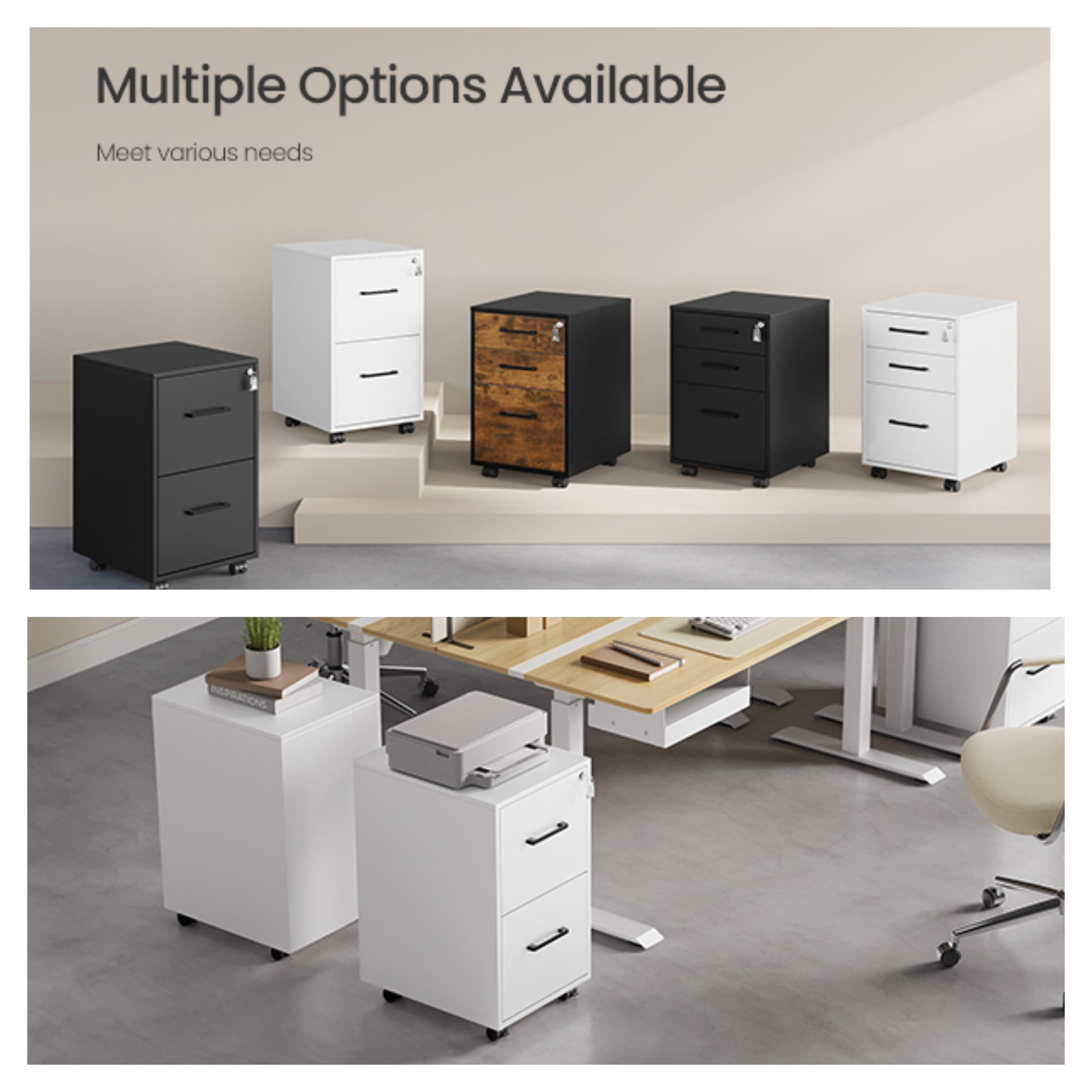 2-Drawer File Cabinet with Lock, Pre-Assembled Mobile Storage for A4, Legal, Letter Files, Steel Frame, Smooth Slides, Matte White