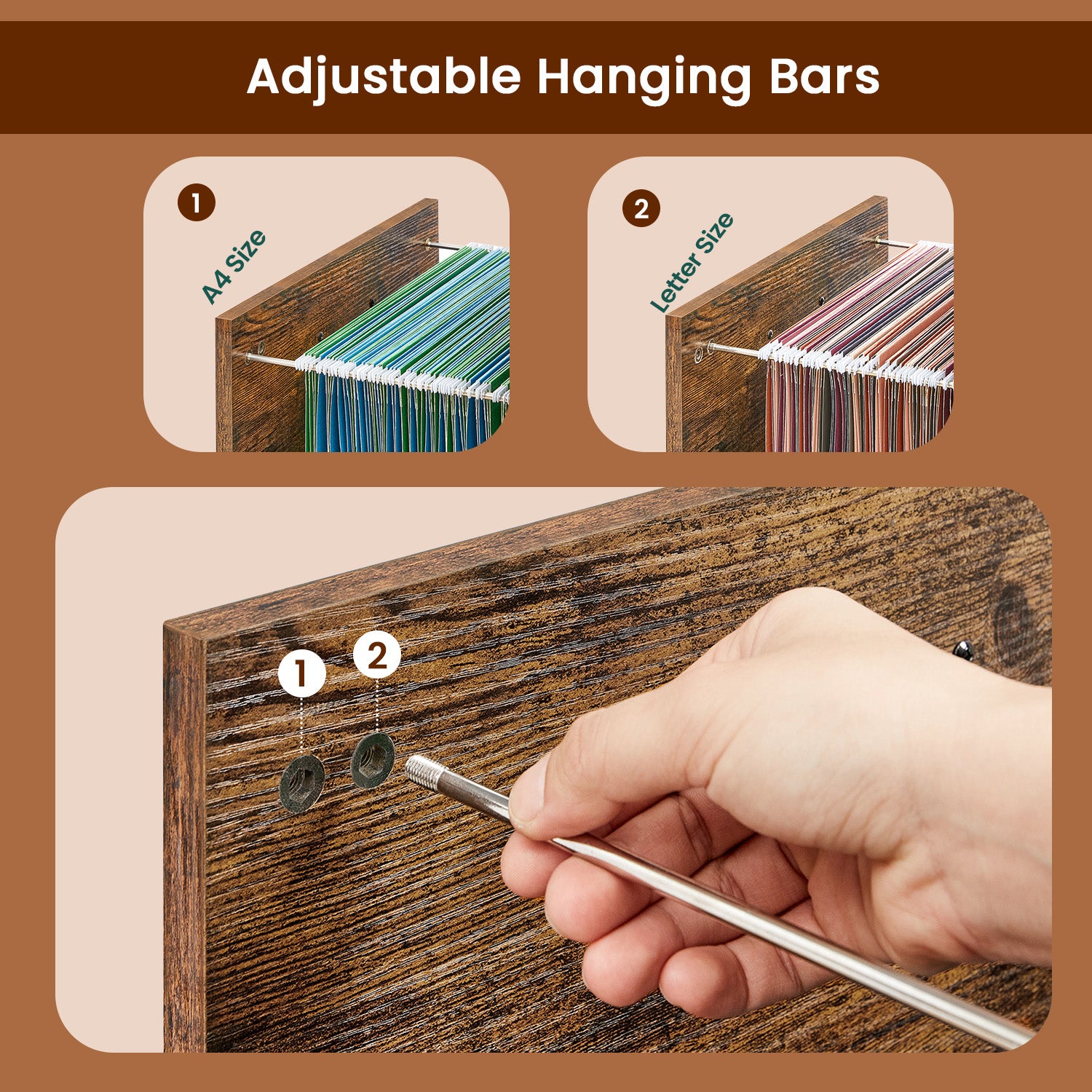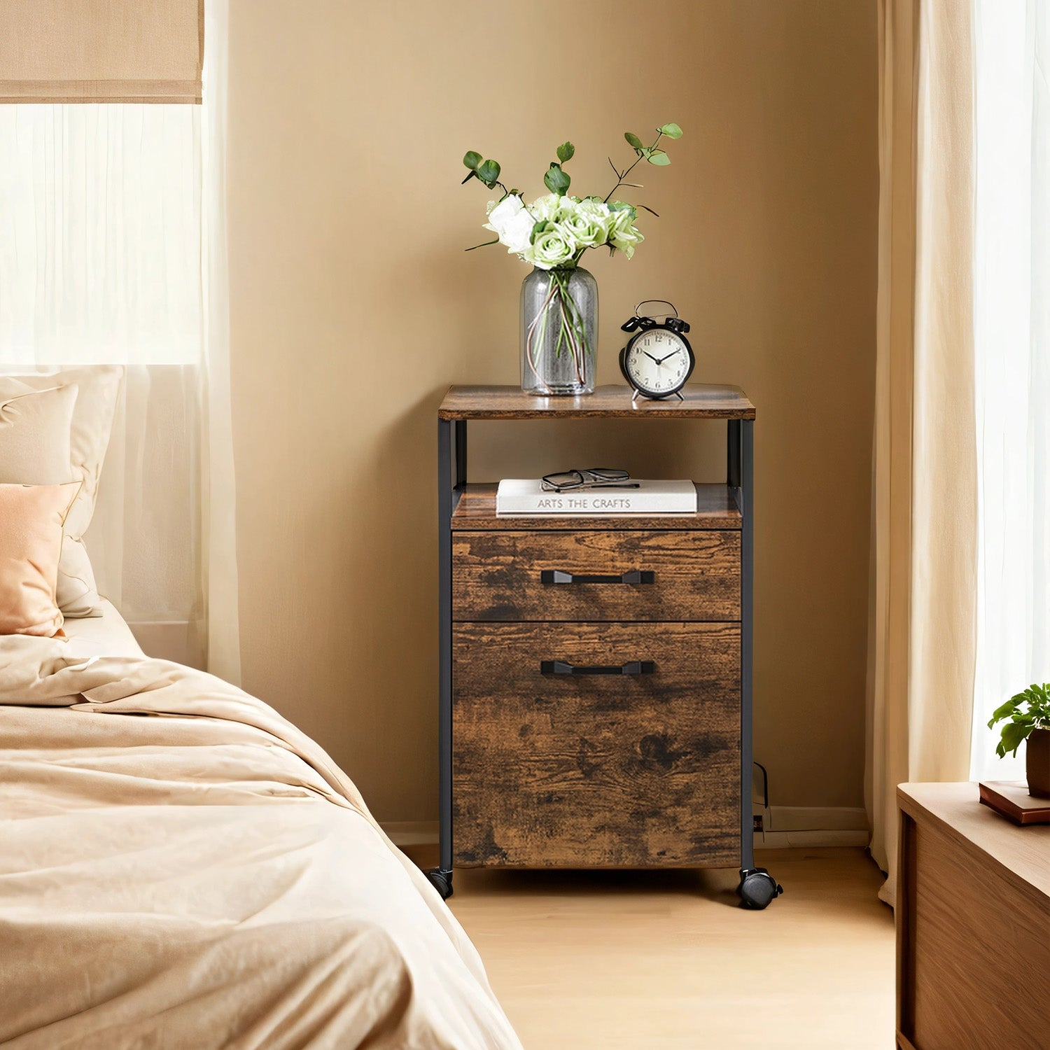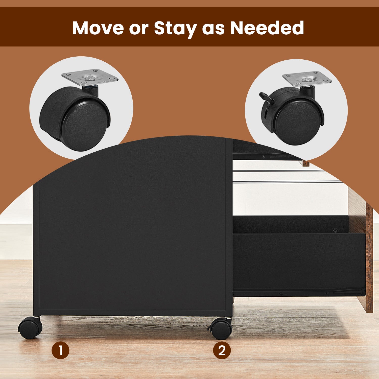 2-Drawer Mobile File Cabinet with Open Shelf, Rolling Storage Organizer for Office, A4 Letter Size, Lockable Wheels, Rustic Brown and Black