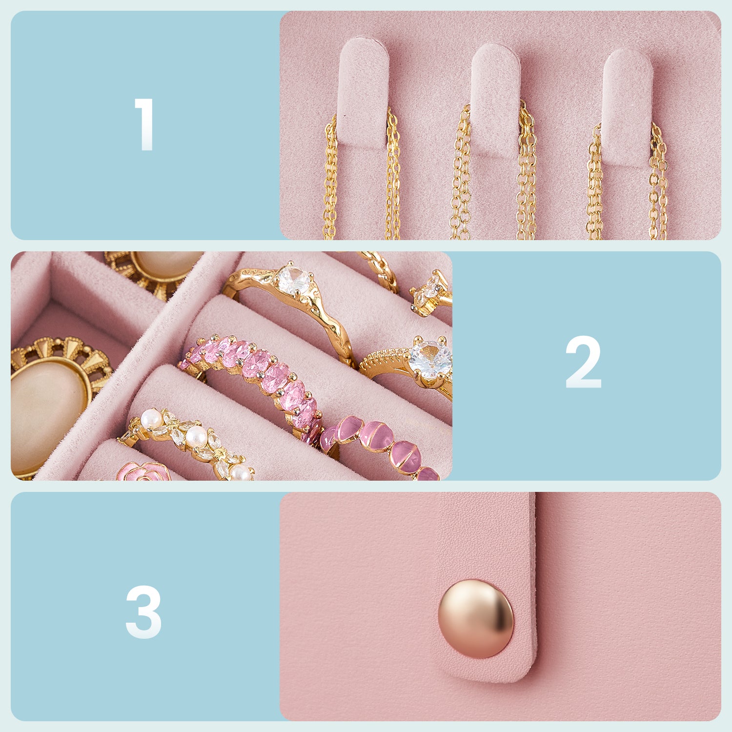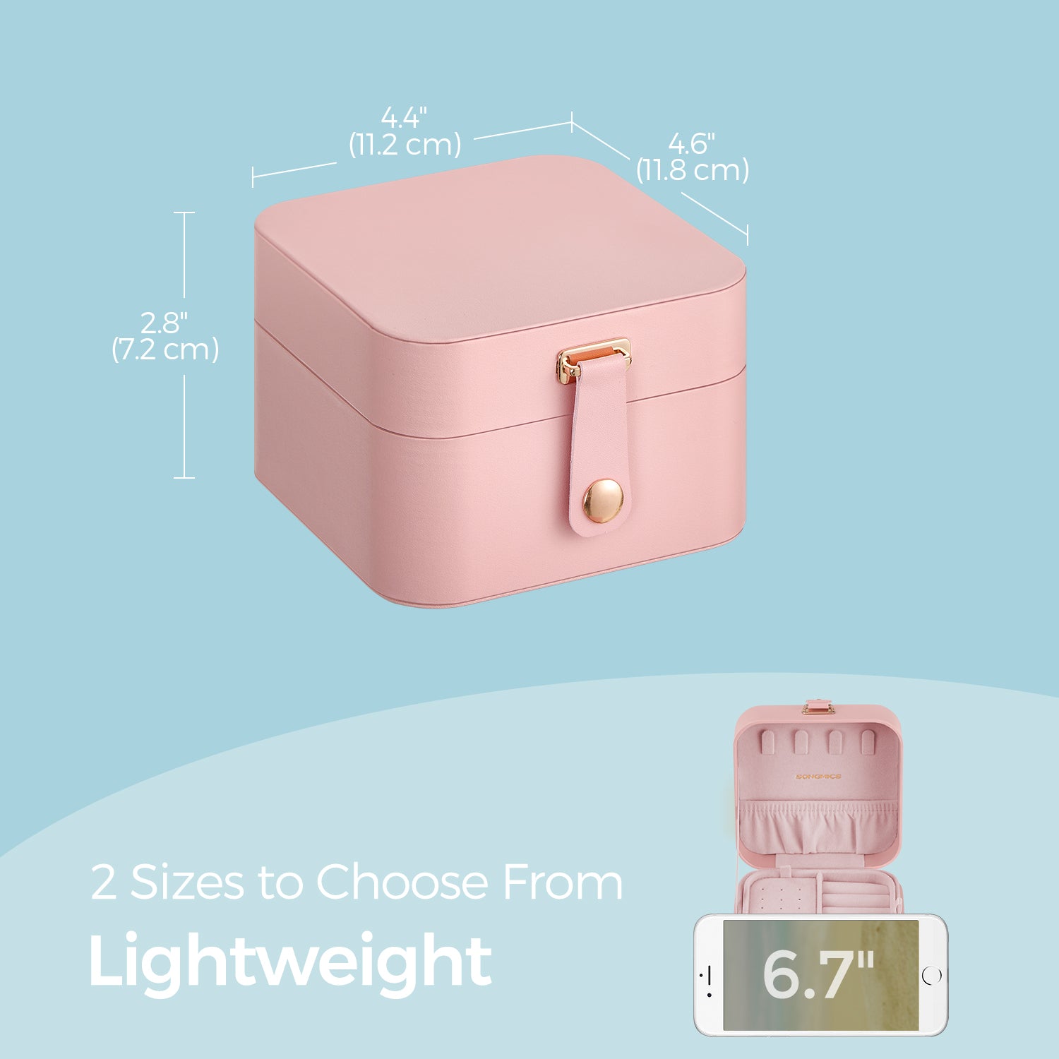 2-Layer Travel Jewelry Organizer Box, Compact & Portable with Removable Tray & Necklace Hooks, for Earrings, Rings, Bracelets, Jelly Pink