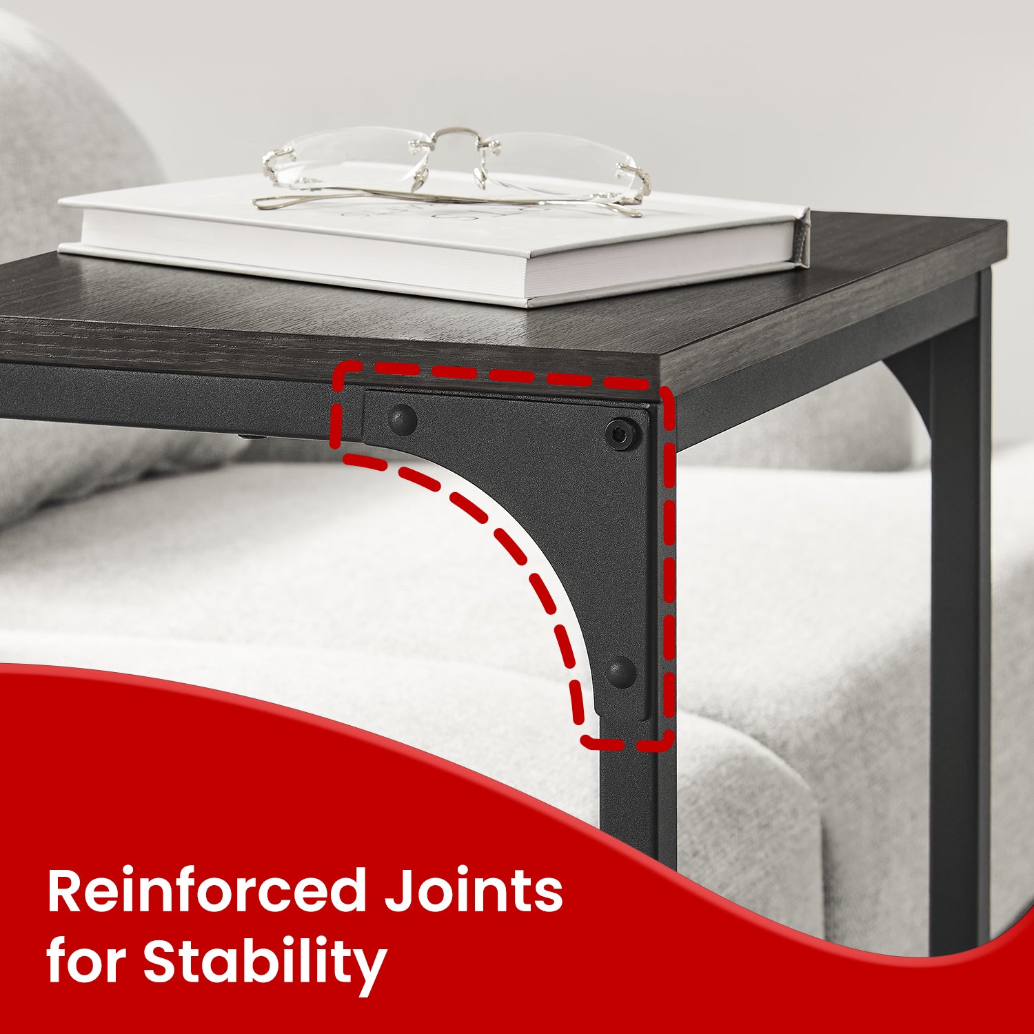 2-Pack C-Shaped End Tables - Slim Sofa Side Tables, 24.4" Height, Steel Frame, Ebonized Oak and Black