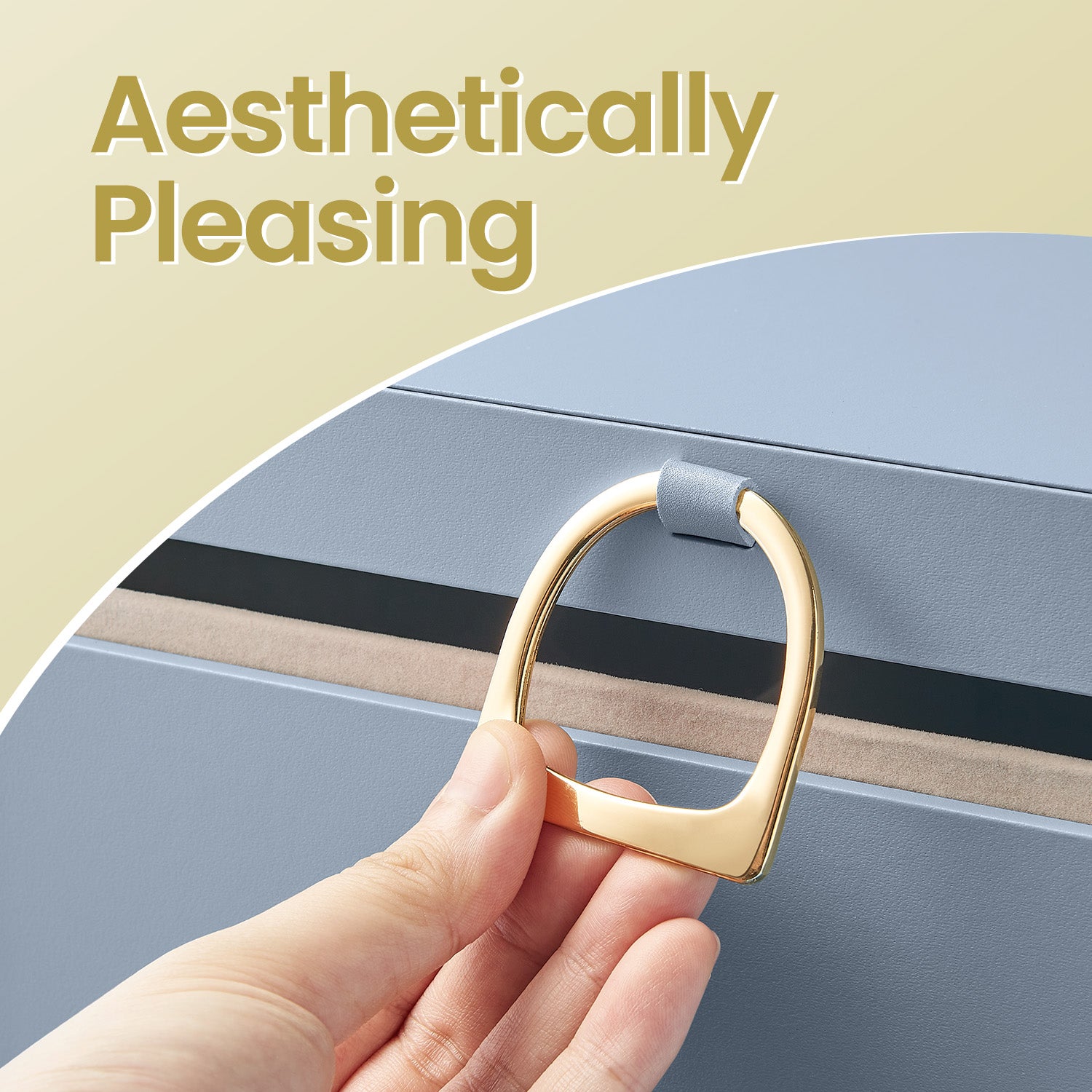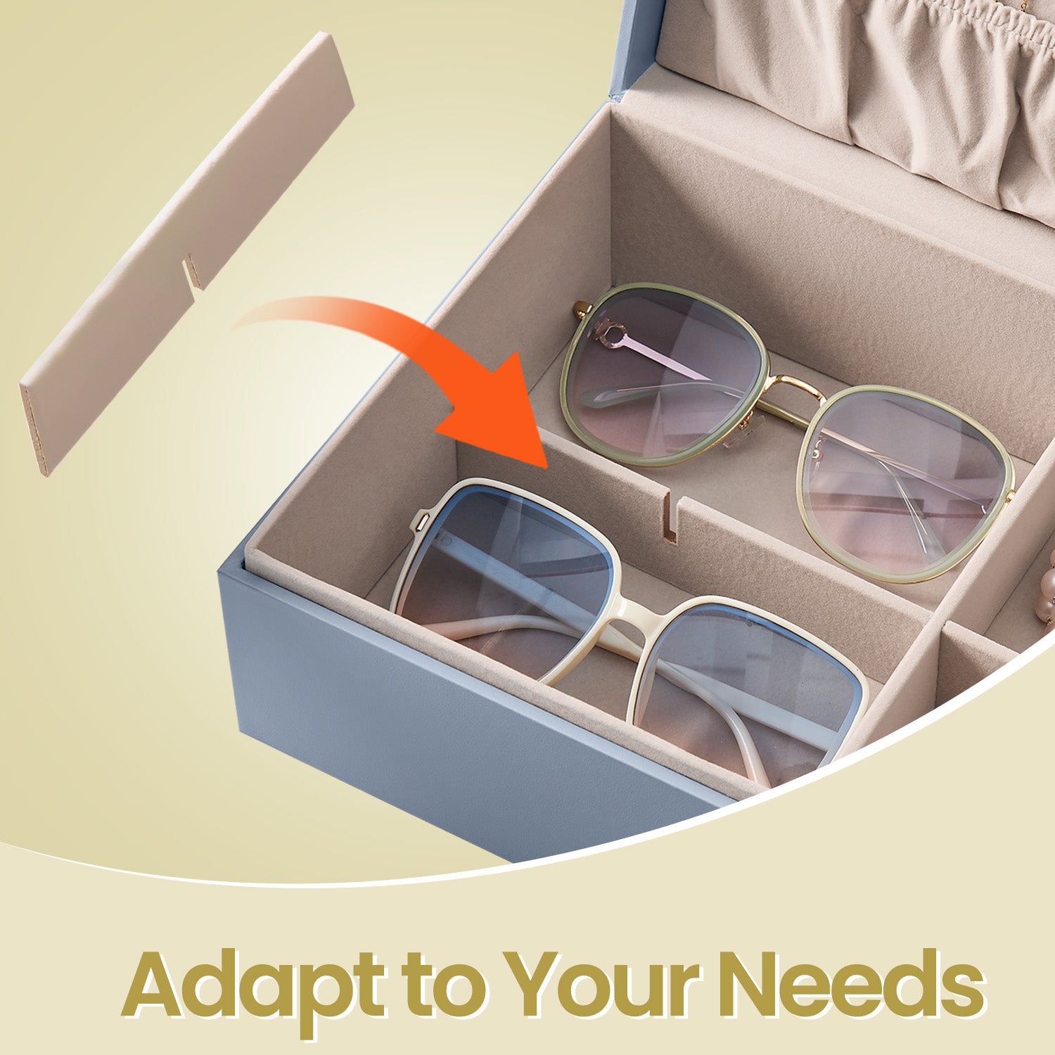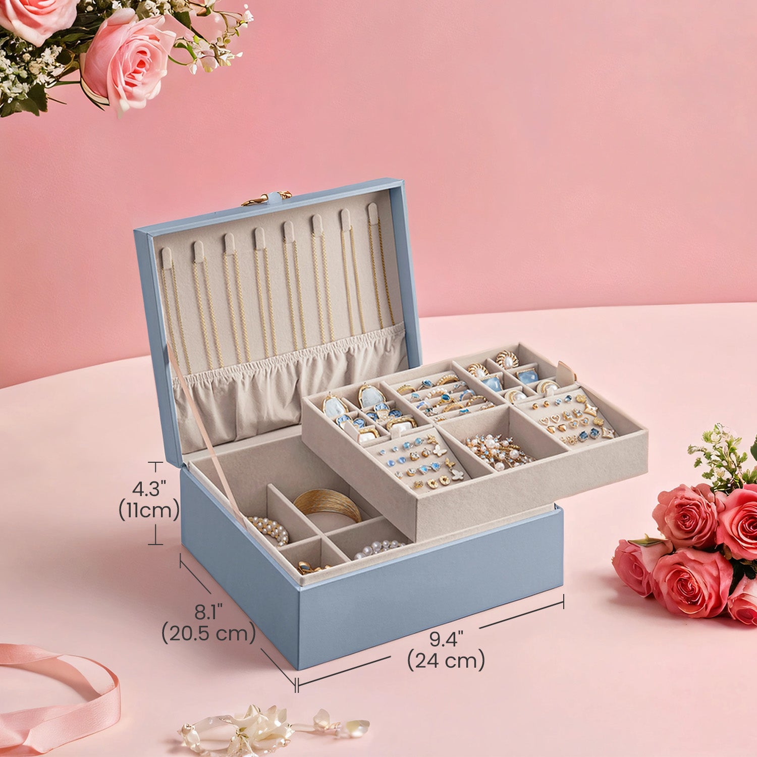 2-Tier Jewelry Organizer Box - Floating Design with Removable Tray & Handle, Velvet Lined Storage for Accessories, Misty Blue