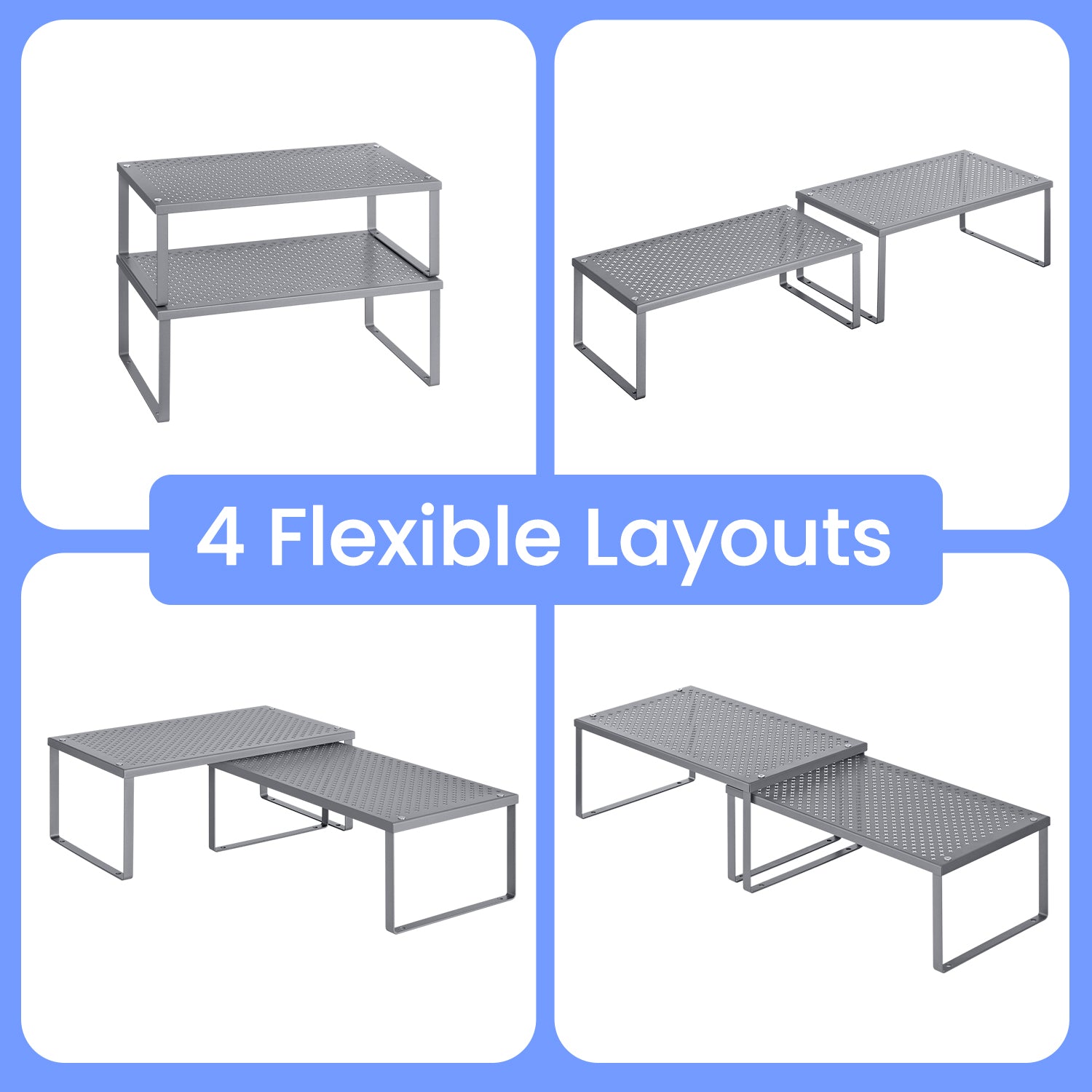 2-Tier Metal Spice Rack Organizer - Heavy Duty 35lb Capacity, Space Saving Design, Stackable Shelves, Silver