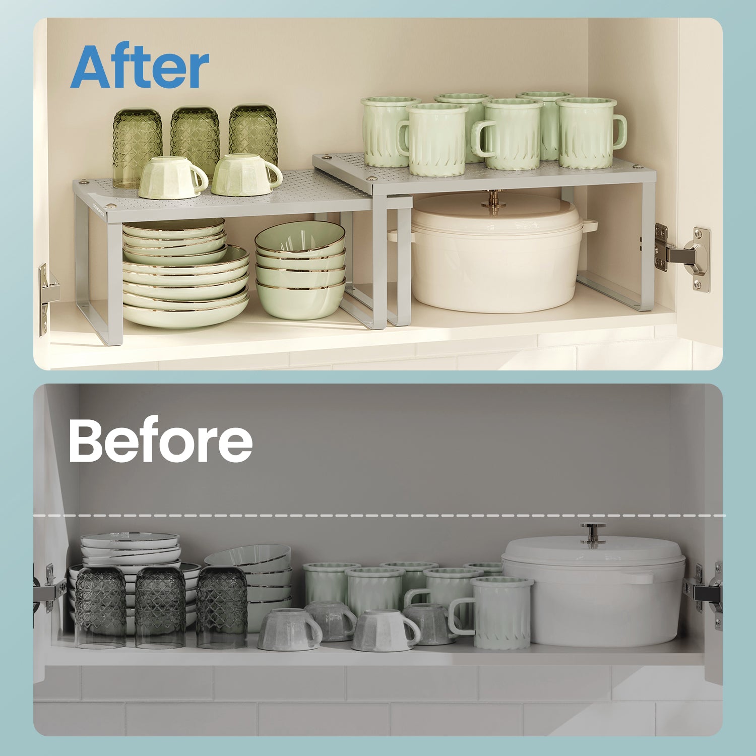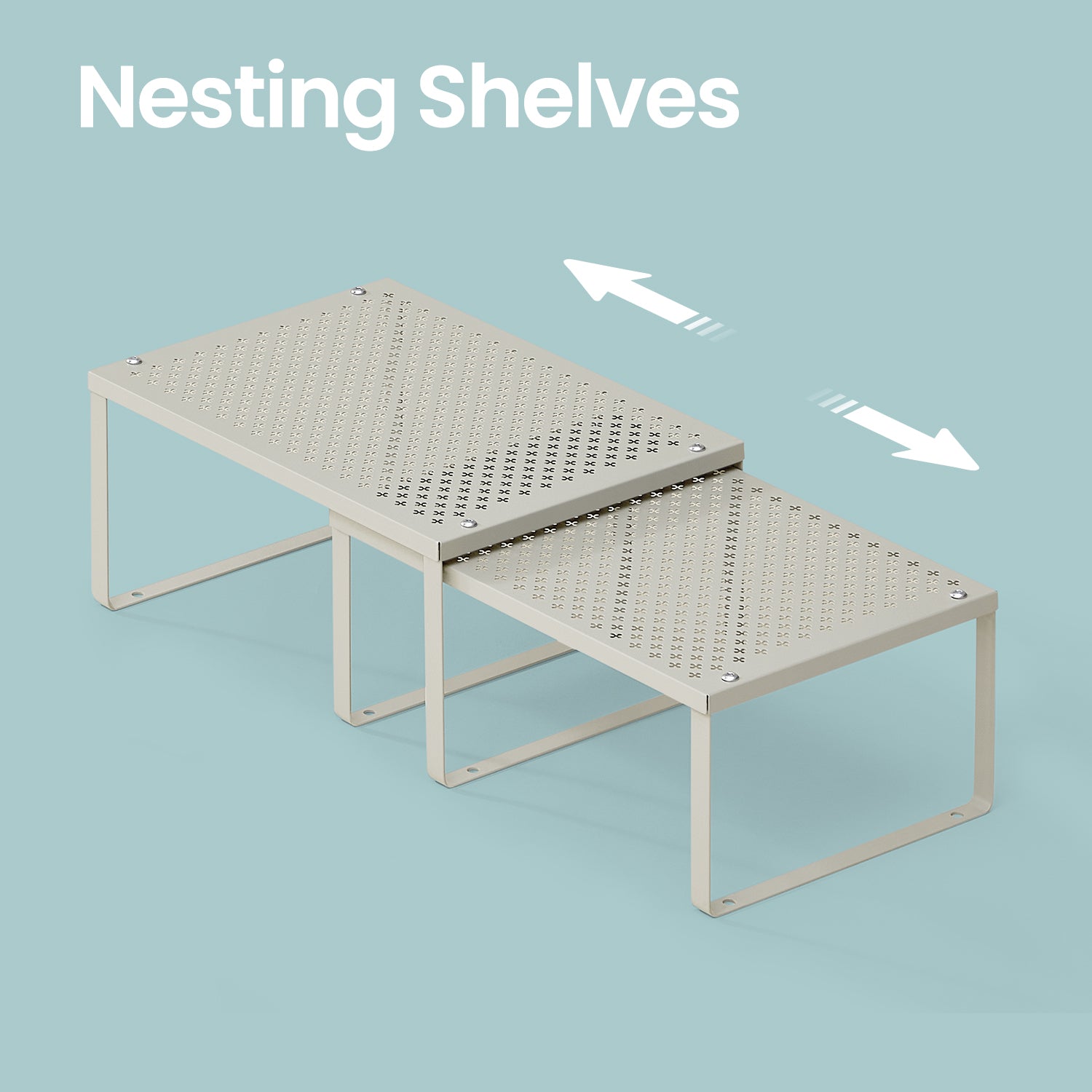 2-Tier Stackable Spice Rack Organizer – Heavy-Duty Metal Shelf Risers for Cabinets & Countertops, Adjustable Design, Holds 22 lbs, Oatmeal Beige