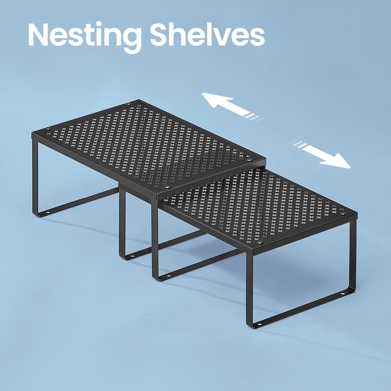 2-Tier Stackable Spice Racks – Heavy-Duty Metal Cabinet & Countertop Organizers, Expandable Shelf Risers for Kitchen Storage, Ink Black