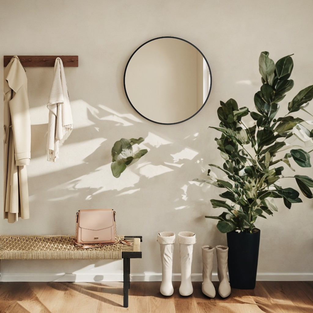 20" Round Bathroom Mirror, Black Circle Wall Mirror with Metal Frame, for Bathroom Over Sink, Bedroom, Living Room, Entryway, Ink Black