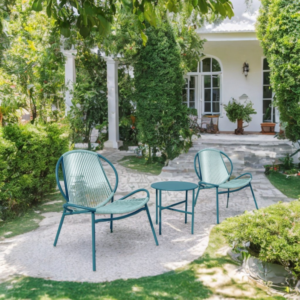 3-Piece Acapulco Bistro Set, 2 Ergonomic Chairs & Table, 286lb Capacity, Indoor, Outdoor Patio Furniture for Balcony, Porch, Lake Blue
