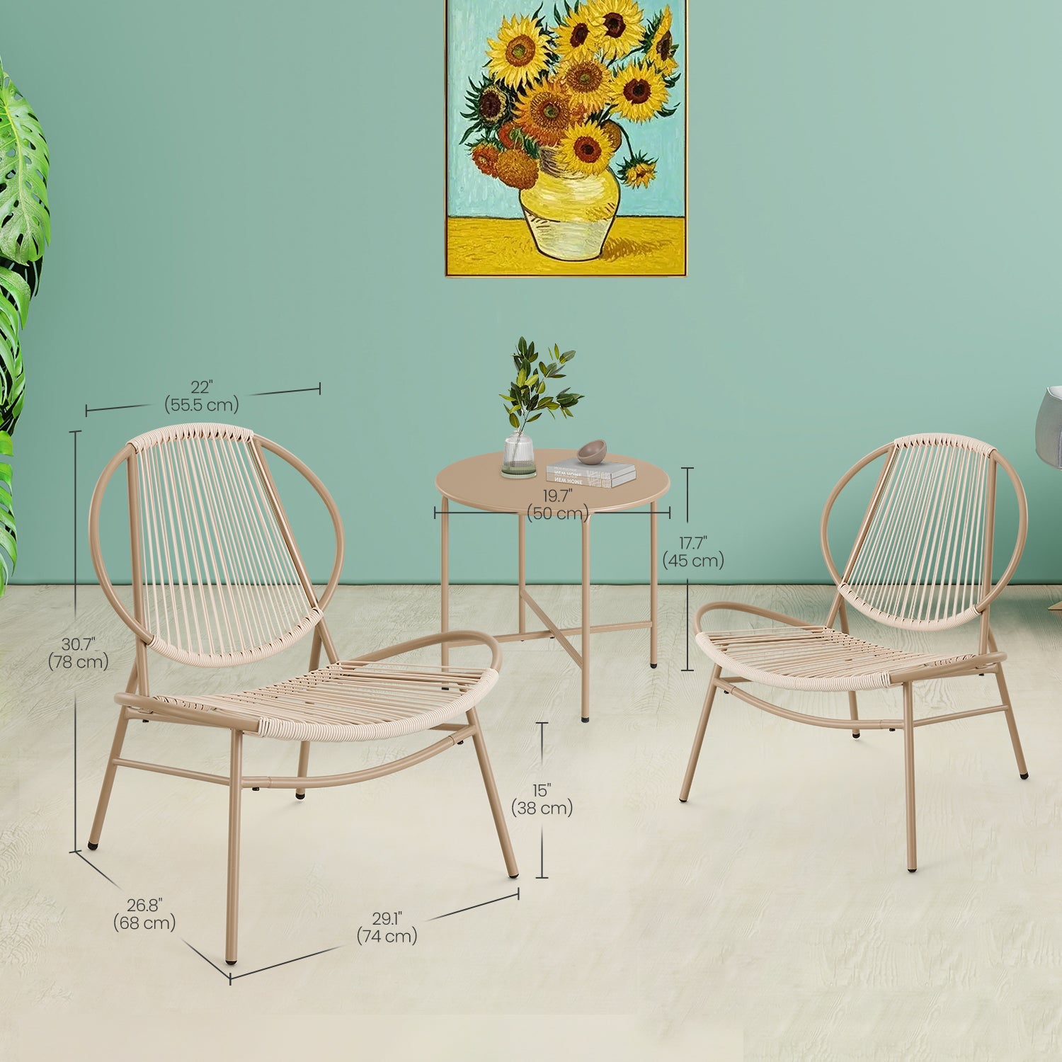 3-Piece Acapulco Bistro Set, Ergonomic Outdoor Chairs & Side Table, Modern Shell Design, 286lb Capacity, For Patio, Balcony, Camel Brown