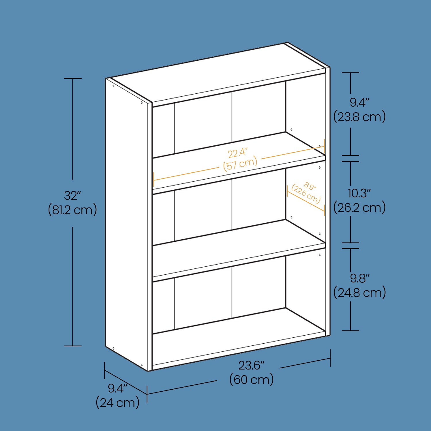 3-Tier Adjustable Bookcase, Open Shelf Organizer, 32" Tall Storage Unit for Home, Office, 22lb Capacity per Shelf, Cloud White