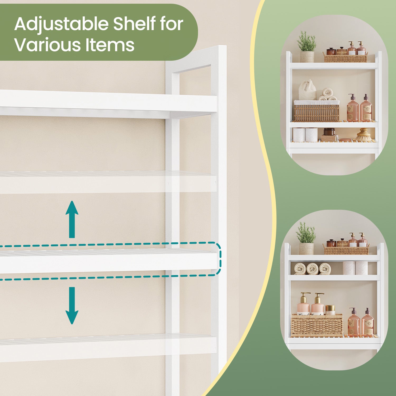 3-Tier Over-The-Toilet Bathroom Shelf Organizer with Adjustable Middle Shelf, 4 Hooks & TP Holder, Space-Saving Design, Fits Most Toilets, Cloud White