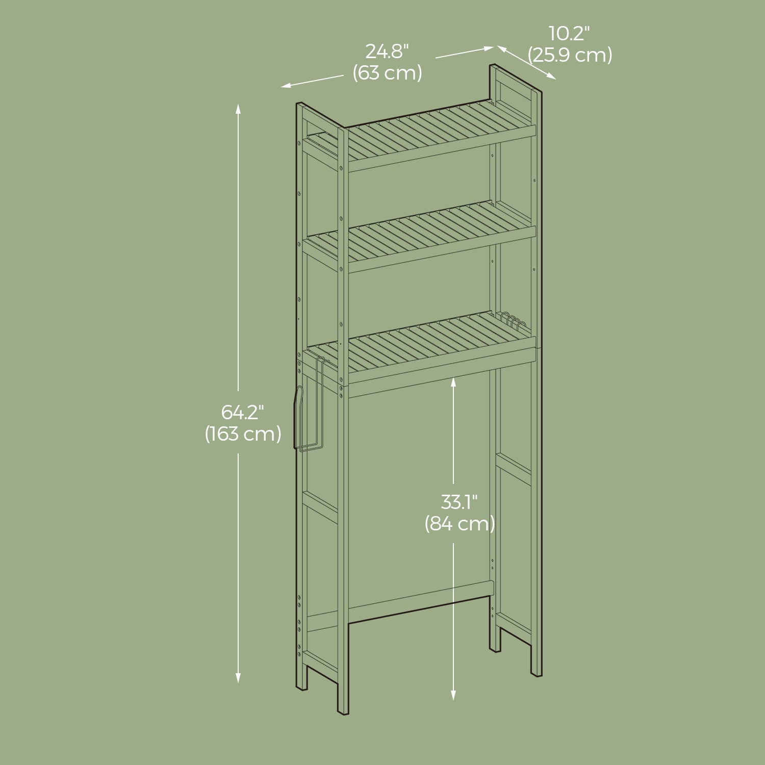 3-Tier Over-The-Toilet Storage Shelf with Adjustable Middle Tier, 4 Hooks & TP Holder,Space-Saving Bamboo Organizer for Bathroom, Gray