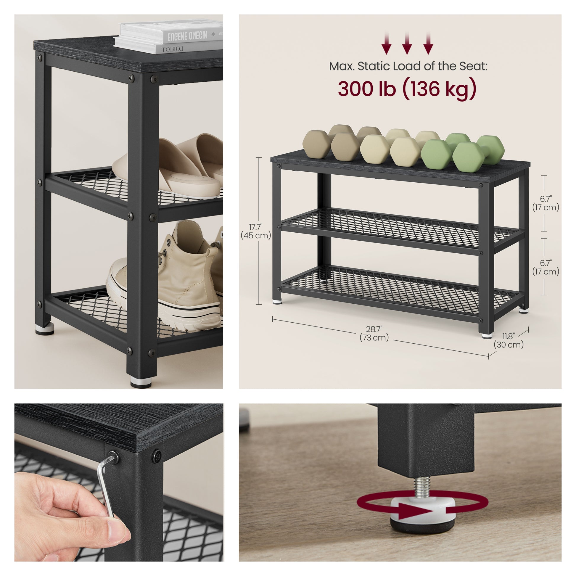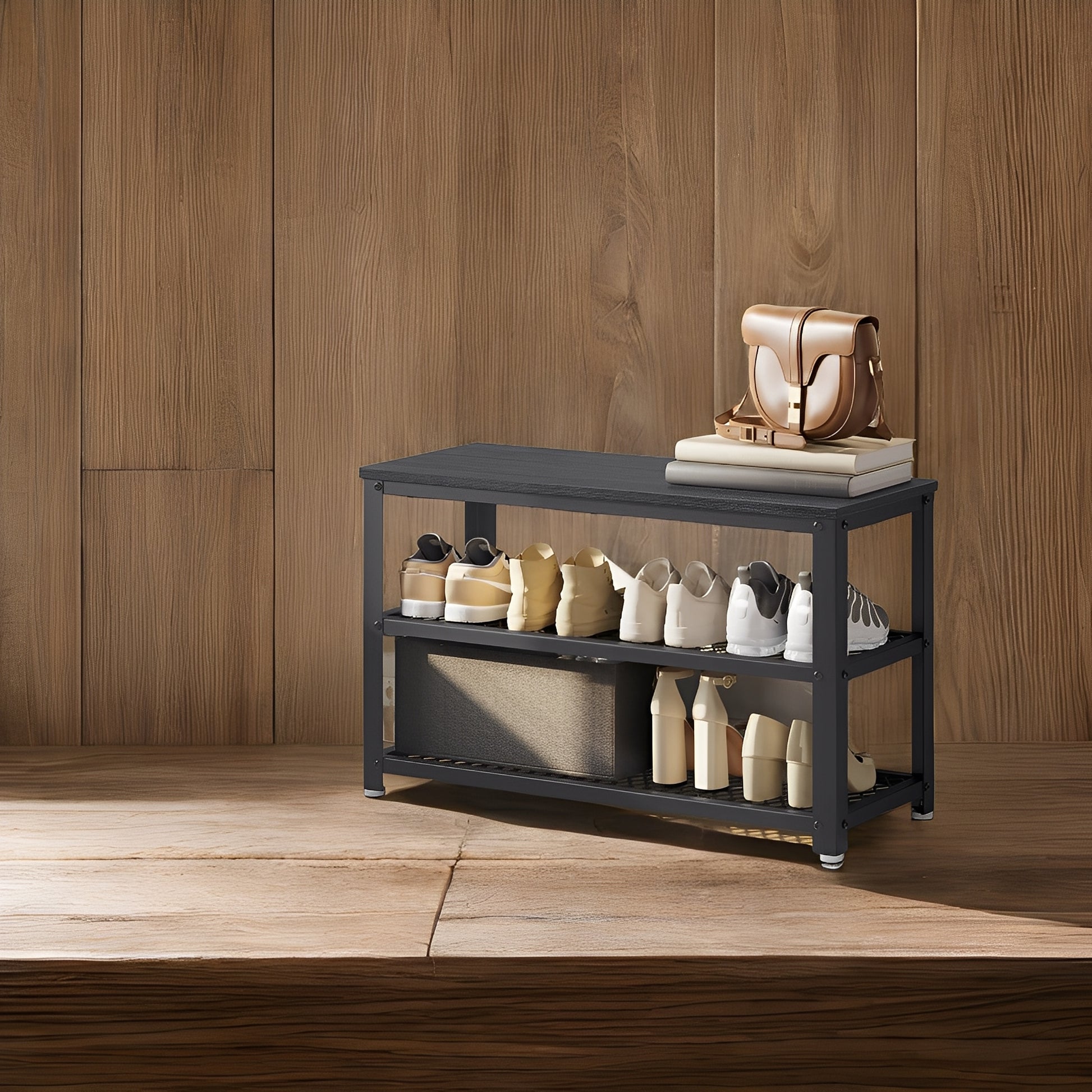 3-Tier Shoe Rack Bench with Seat, Free Standing Shoe Organizer Storage Shelf for Entryway Hallway, Holds 6-8 Pairs, Black