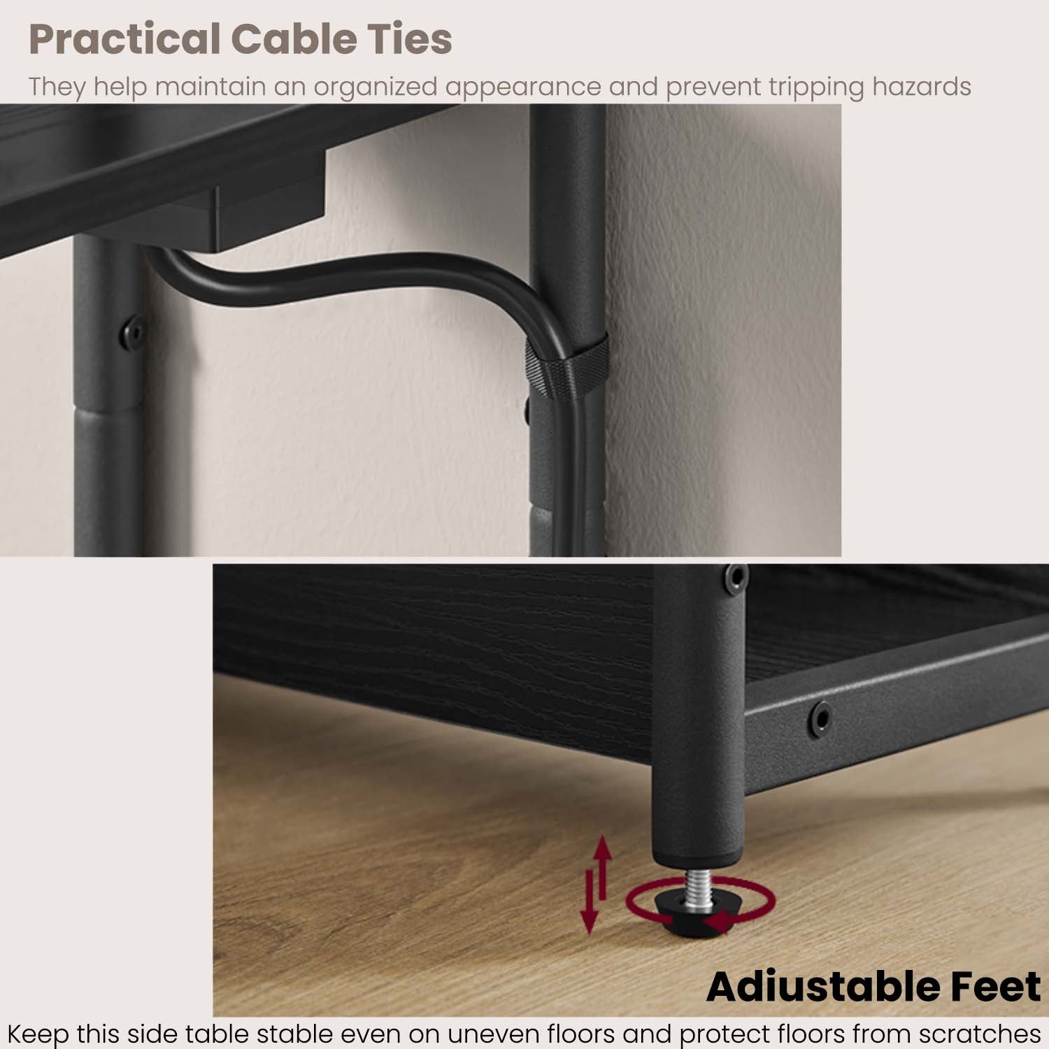 3-Tier Side Table with Charging Station, Narrow End Table with AC Outlet & USB Ports, Nightstand for Living Room, Bedroom, Ebony Black