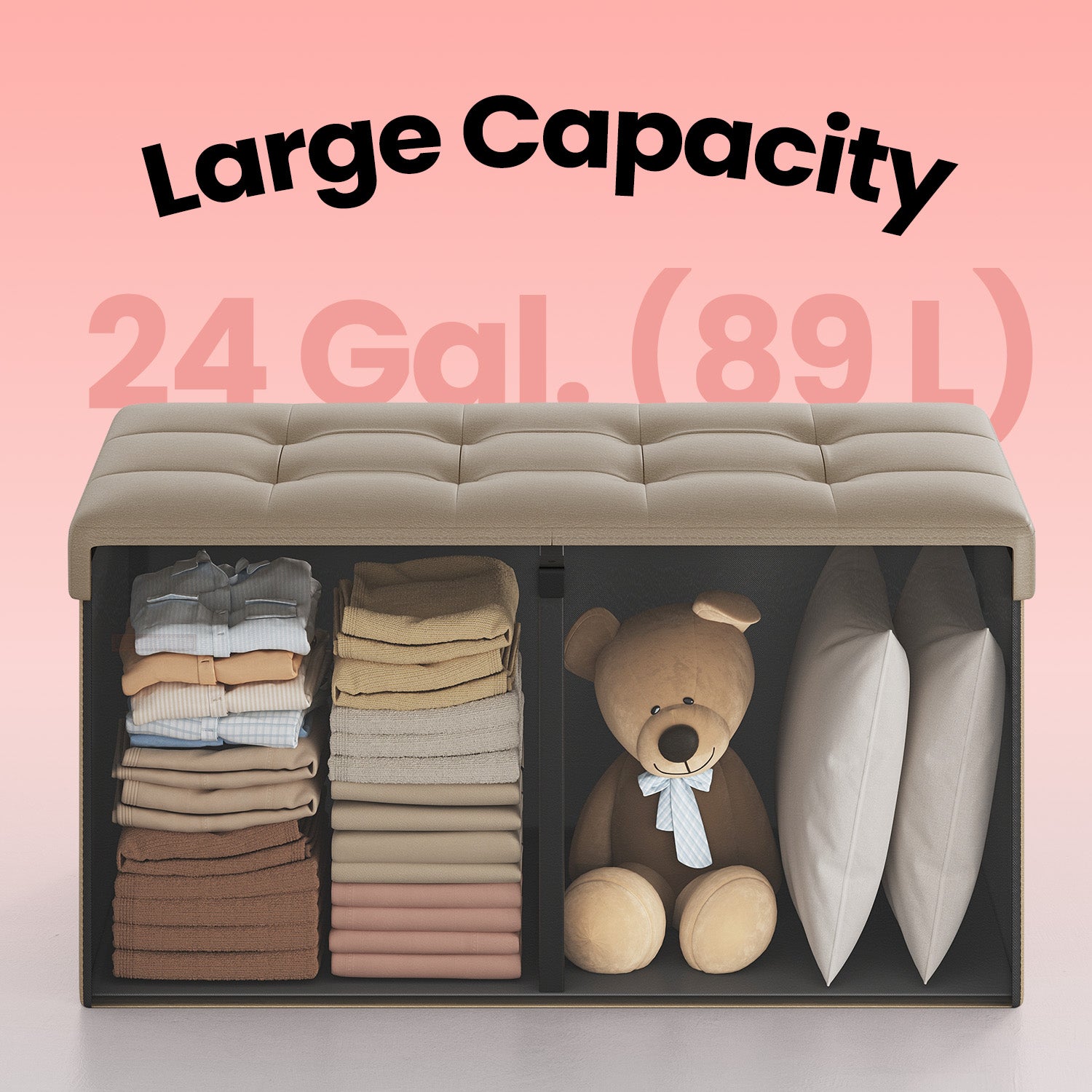 30" Foldable Storage Ottoman Bench, 660lb Capacity, Multi-Use Footstool & Chest, Synthetic Leather, Camel Brown