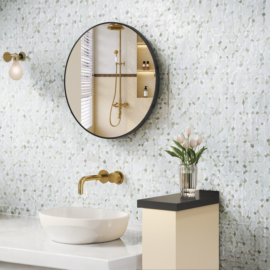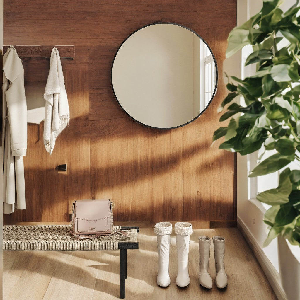 30" Round Bathroom Mirror, Large Black Circle Wall Mirror with Metal Frame, for Bathroom Over Sink, Living Room, Entryway, Ink Black