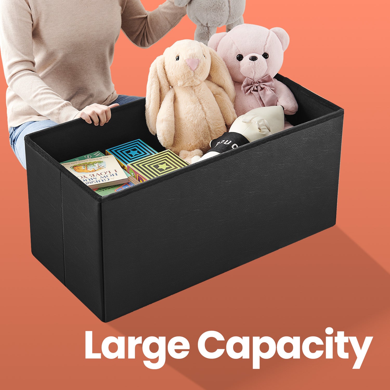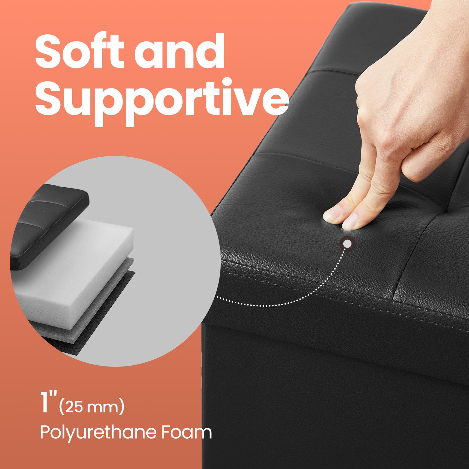 30" Storage Ottoman Bench with Flip-Top Lid, 660lb Capacity, Multi-Functional Footrest, Seat, Easy-Clean Synthetic Leather, Black