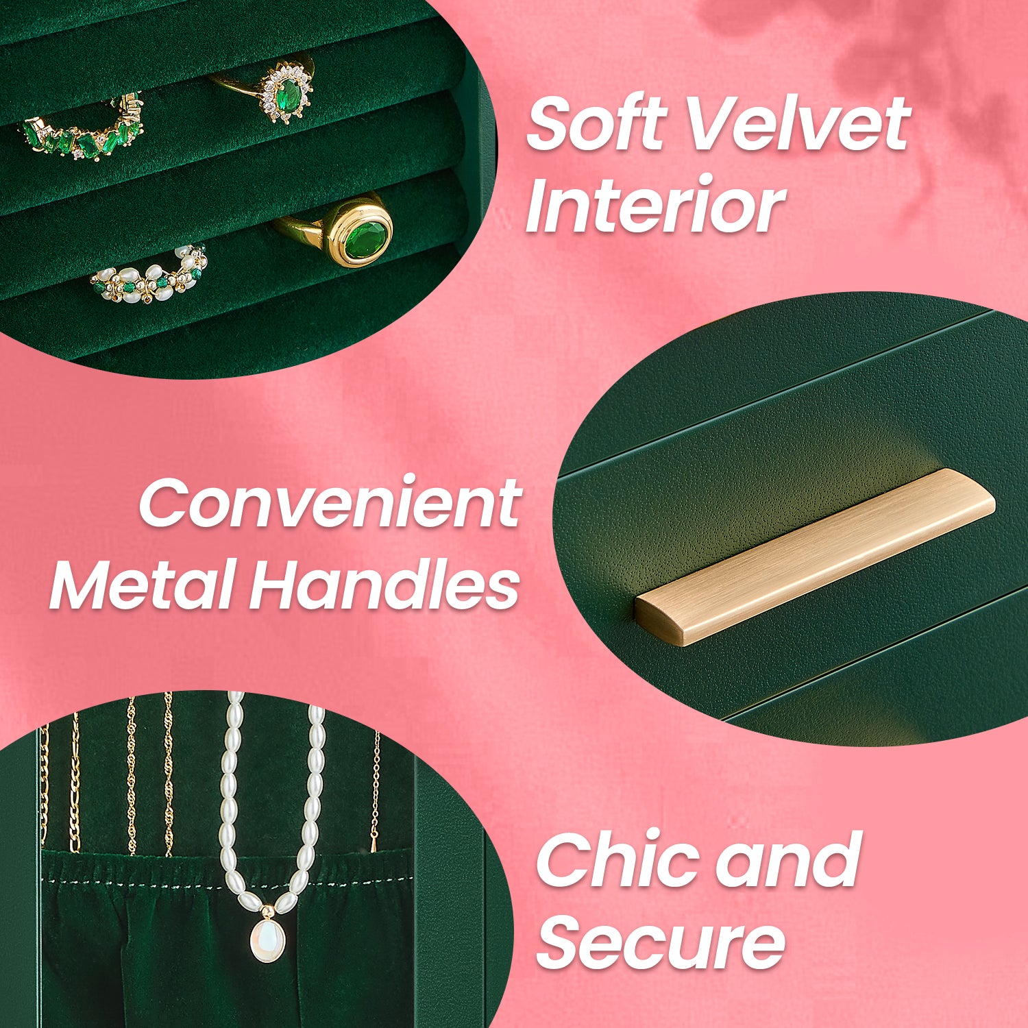 360° Rotating Jewelry Organizer with 5 Drawers & 18 Necklace Hooks, Vertical Storage, Glass Window, Velvet Lining, Giftable Jewelry Box , Forest Green