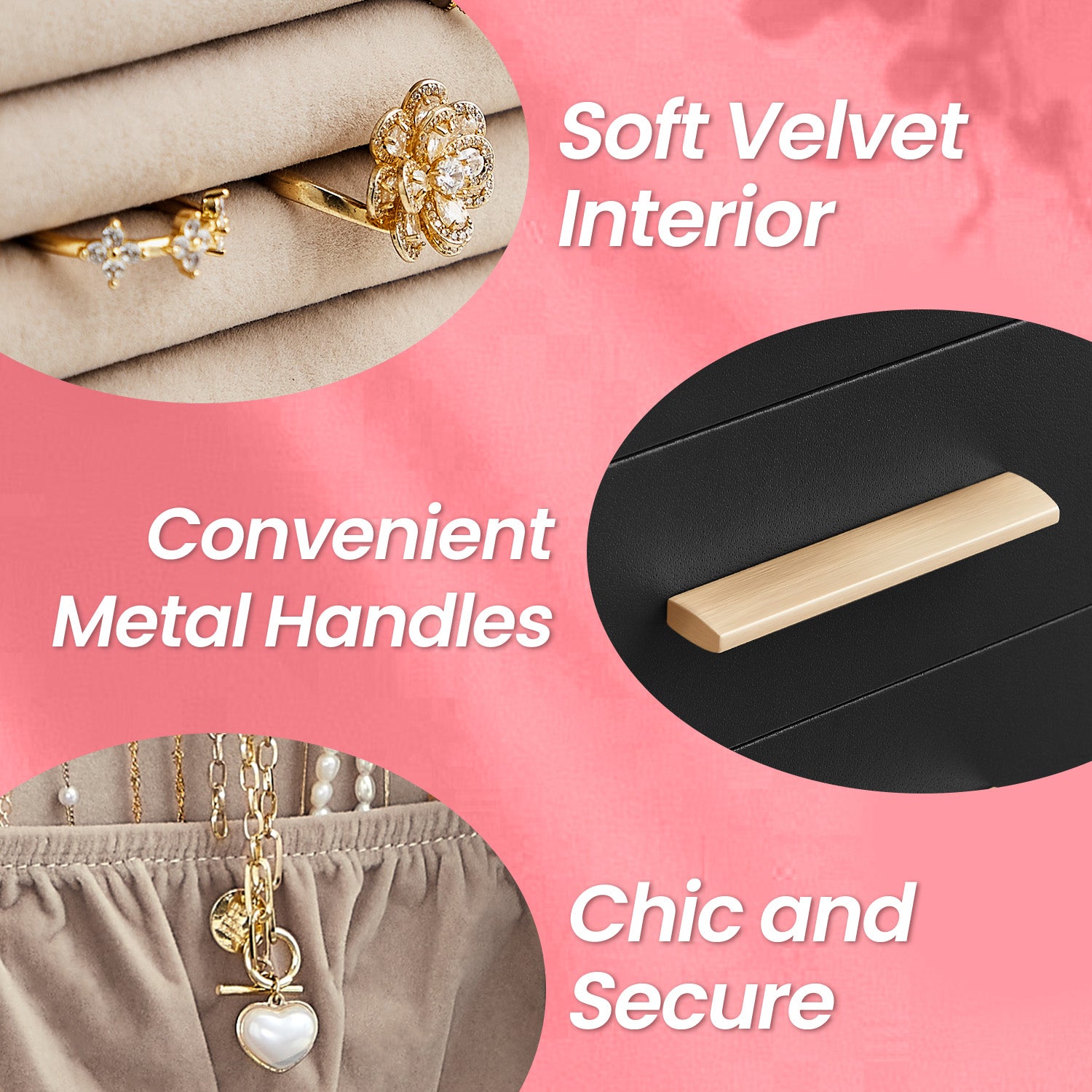 Luxury Meets Durability – Sleek graphite black exterior with plush velvet interiors and sturdy MDF construction, offering both style and superior protection for your treasures.