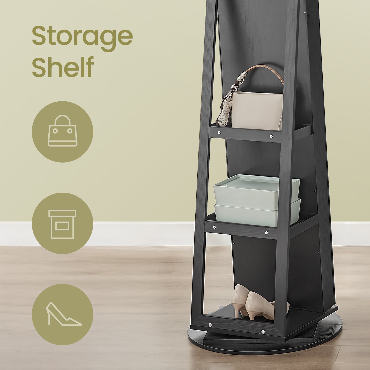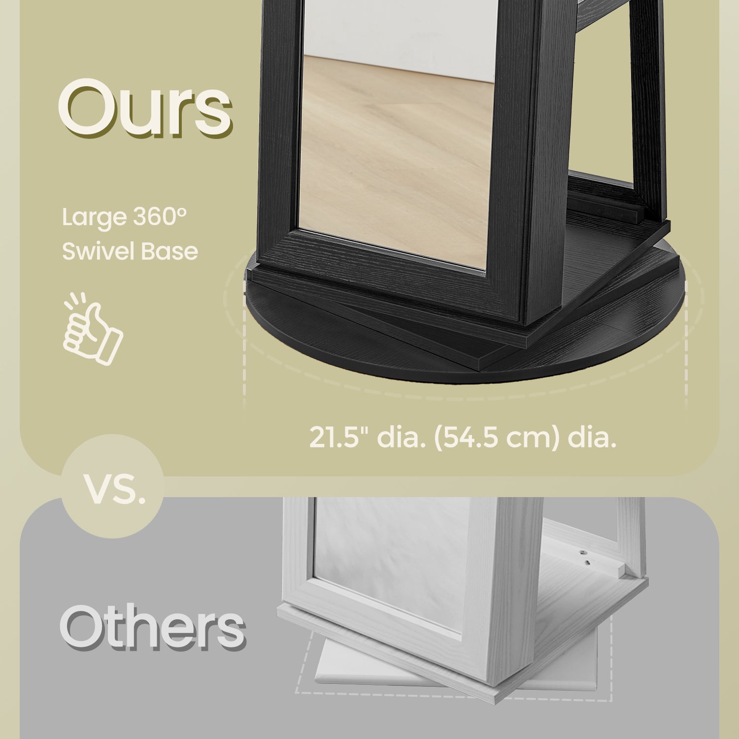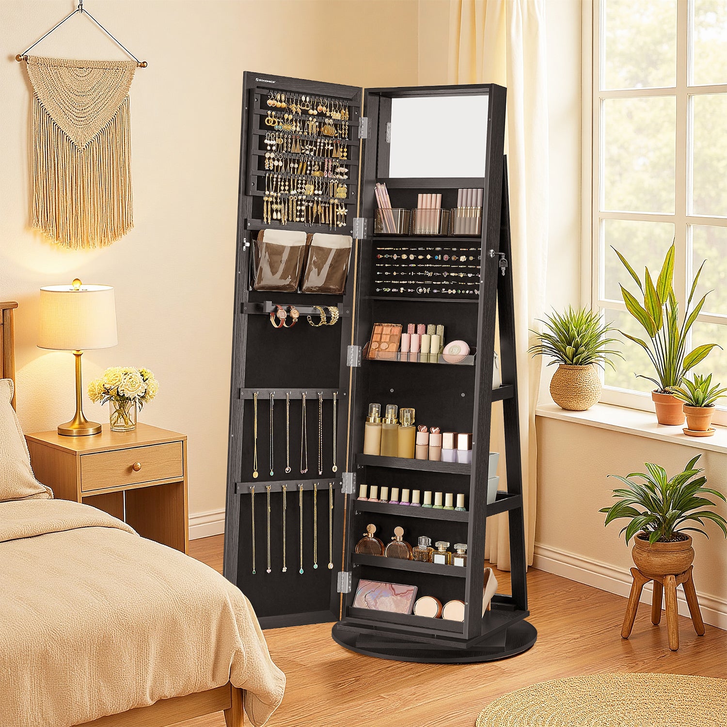 360° Swivel Jewelry Armoire with Lock, Full-Length Mirror & Rear Shelves – 120 Earring Slots, 12 Necklace Hooks, 78 Ring Holders, Velvet-Lined, Black
