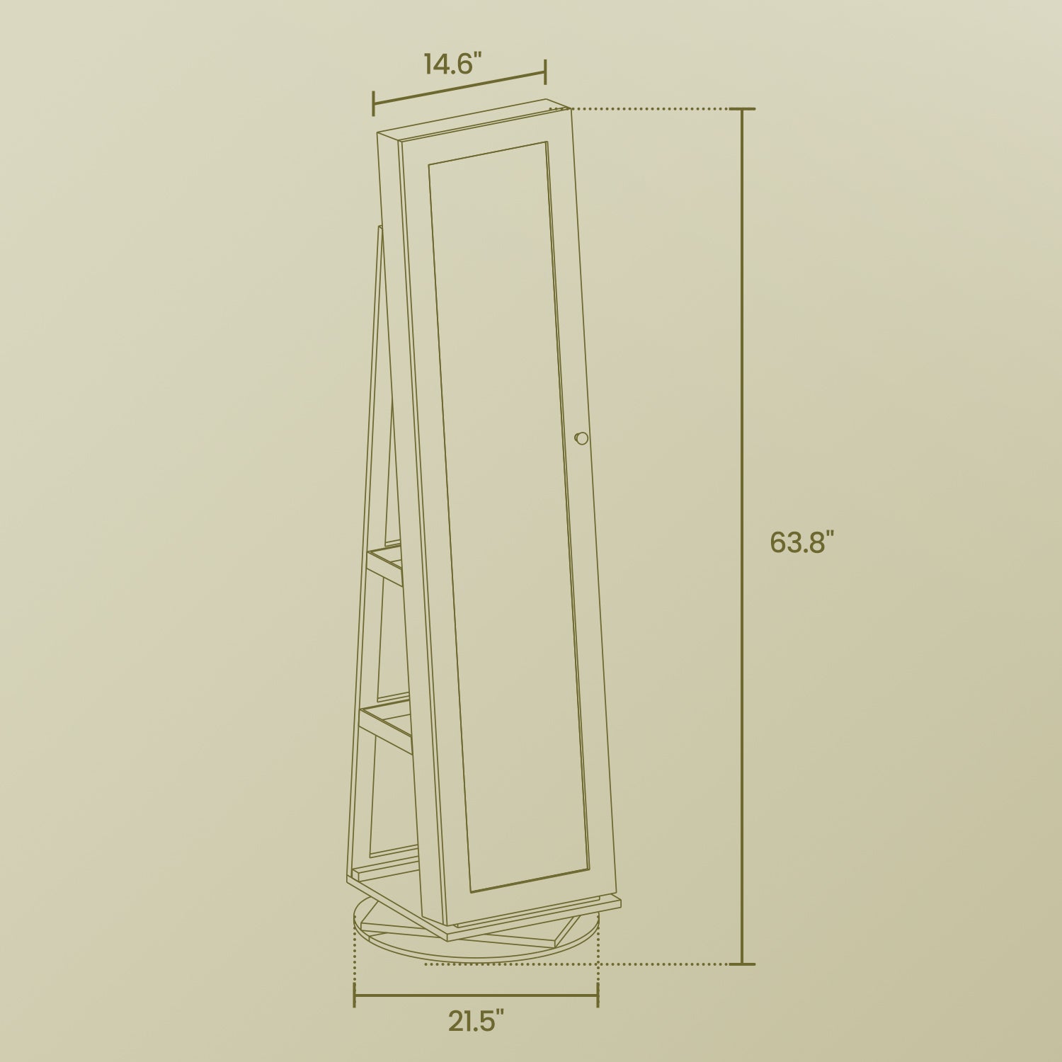 All-in-One Vanity & Storage – A full-length mirror, spacious jewelry storage, and 3 back shelves for bags or boxes keep your essentials neatly in one place.
