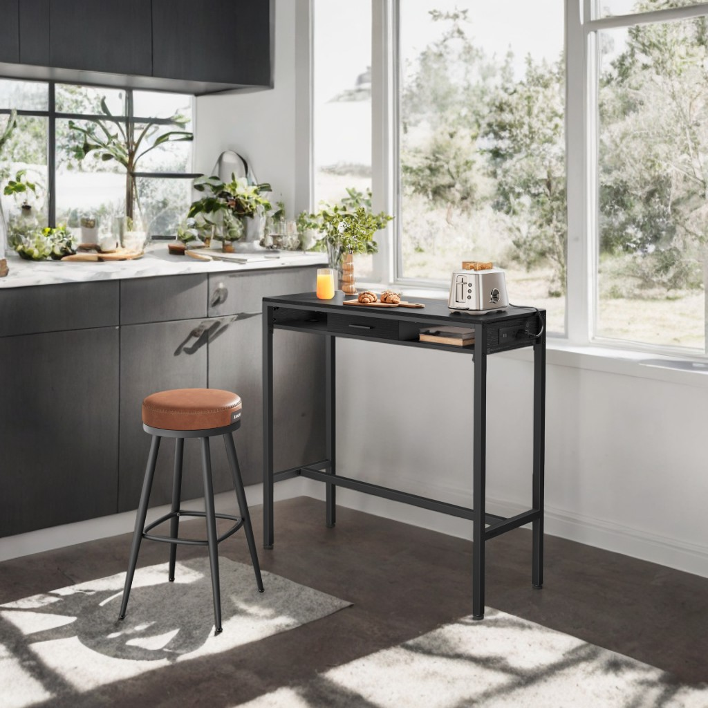 39.4" Bar Table with Power Outlets & Storage Drawer, Adjustable Height Pub Table with USB Ports & Hooks, Narrow Design, Ebony Black