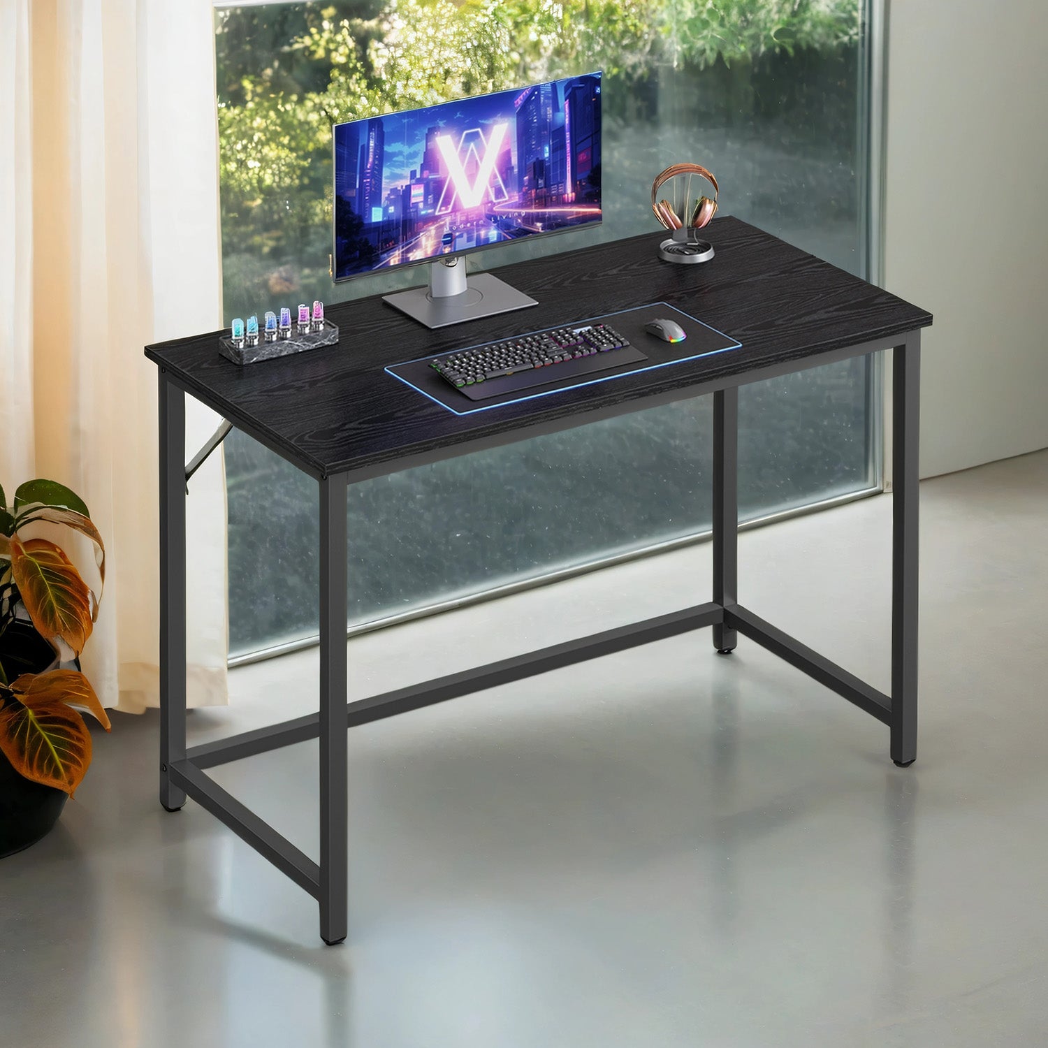 39.4" Computer Gaming Desk, Small Space Office Desk with Metal Frame, 110 lb Capacity, Industrial Style, Black with Wood Grain