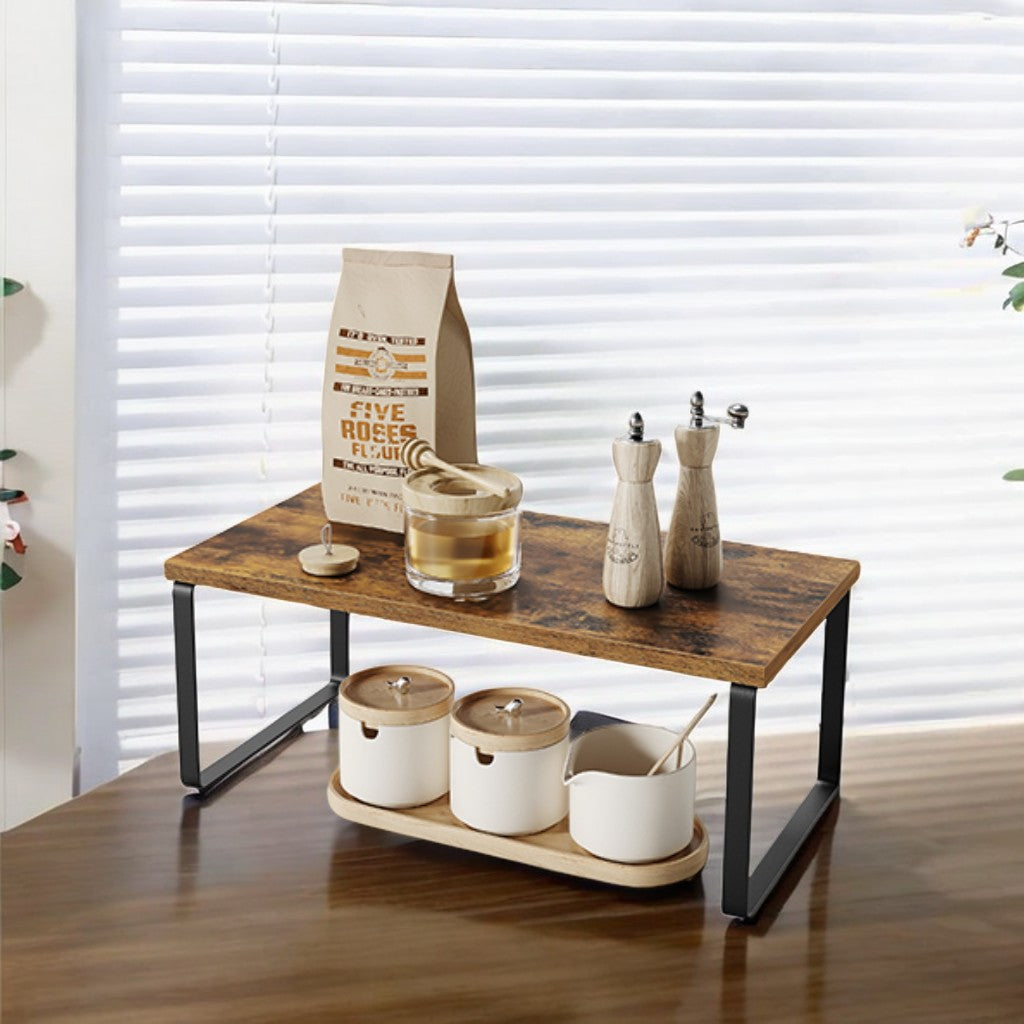 4-Pack Stackable Kitchen Shelves - 33lb Capacity, Adjustable Organizer Rack, Metal/Wood Construction, Ink Black and Rustic Brown