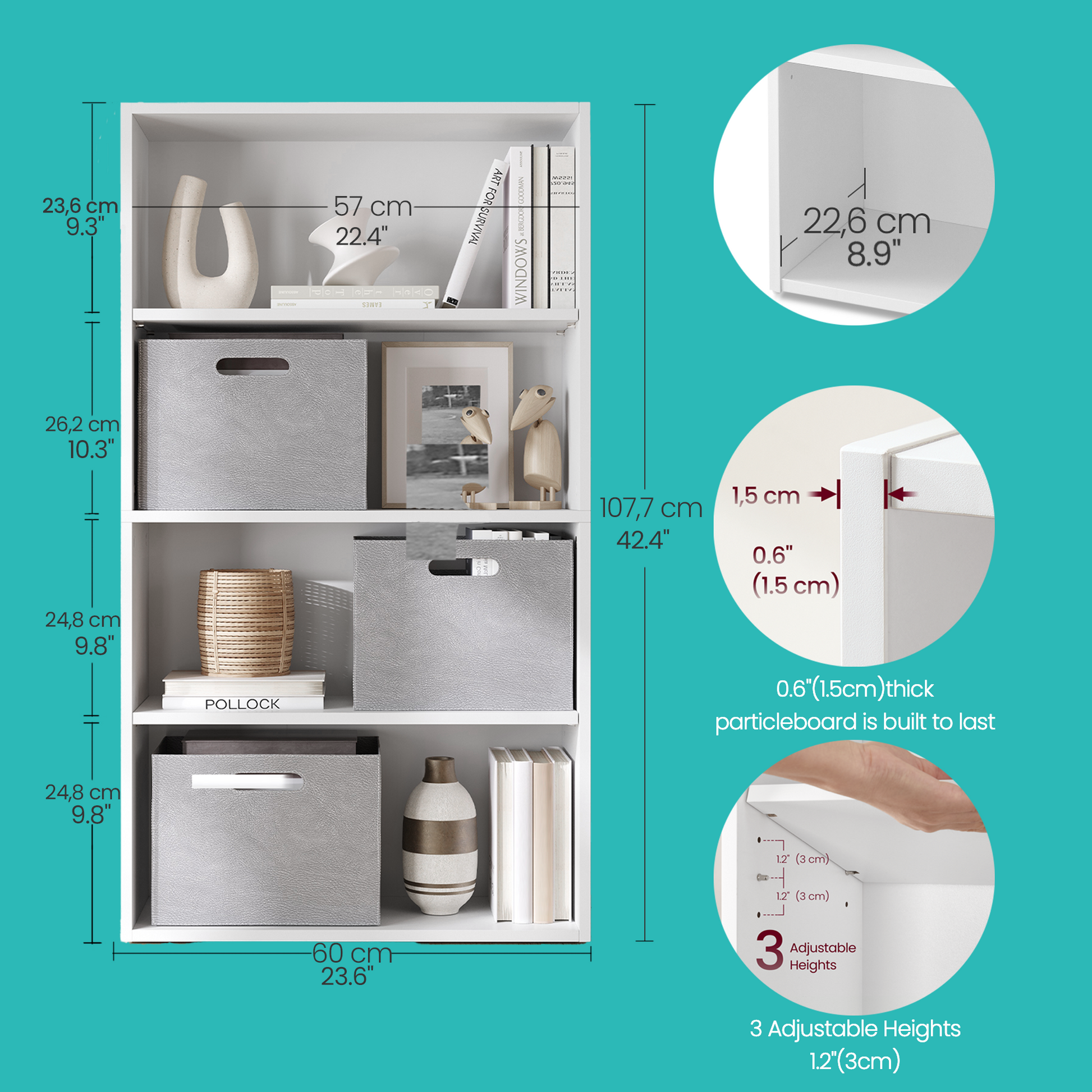 4-Tier Adjustable Bookcase, Open Shelf Organizer, 42.4" Tall Storage Unit for Home, Office, 22lb Capacity, Cloud White