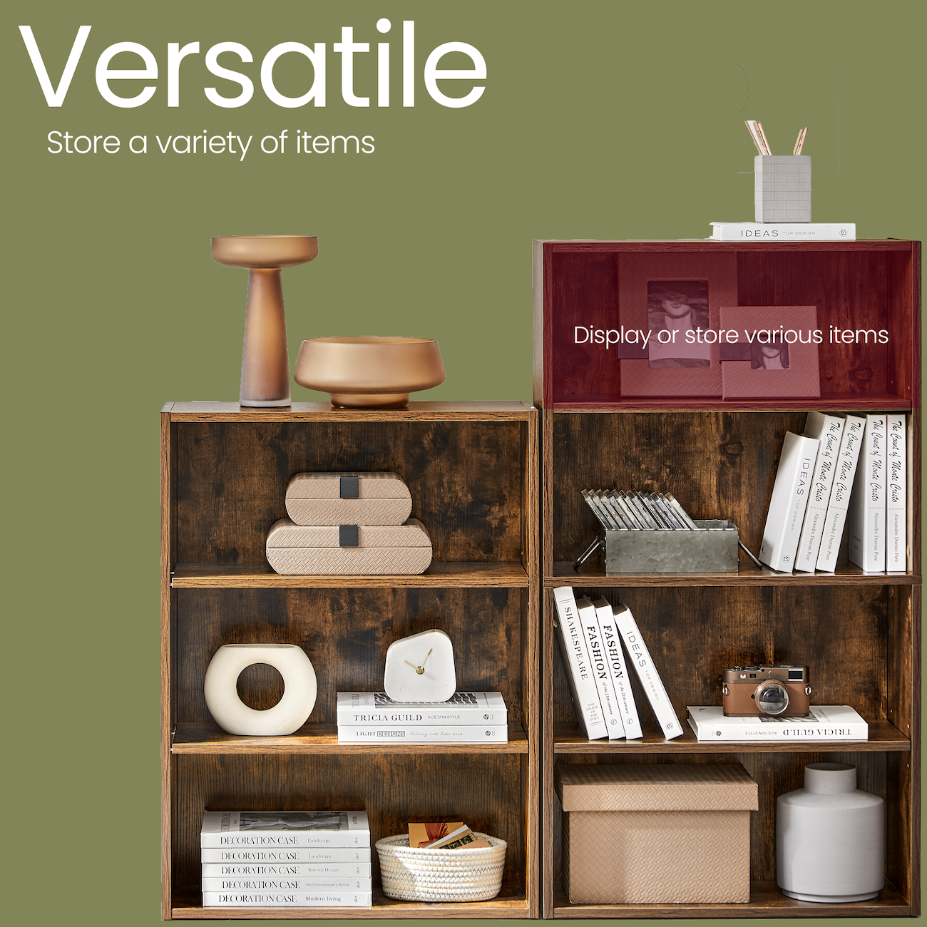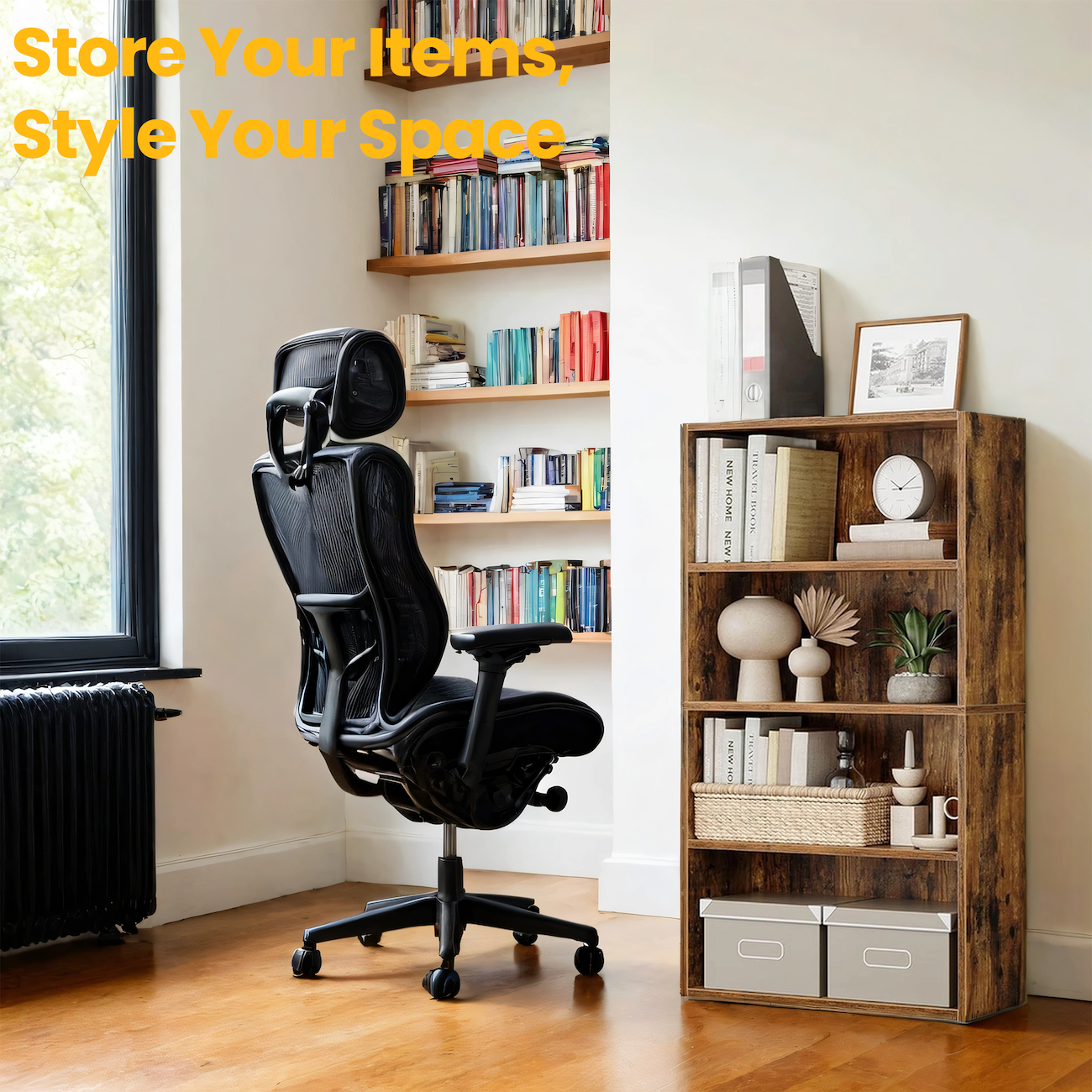 4-Tier Bookcase, Adjustable Open Shelf, 23.6" Wide Storage Unit for Books, Decor & Office, Rustic Brown
