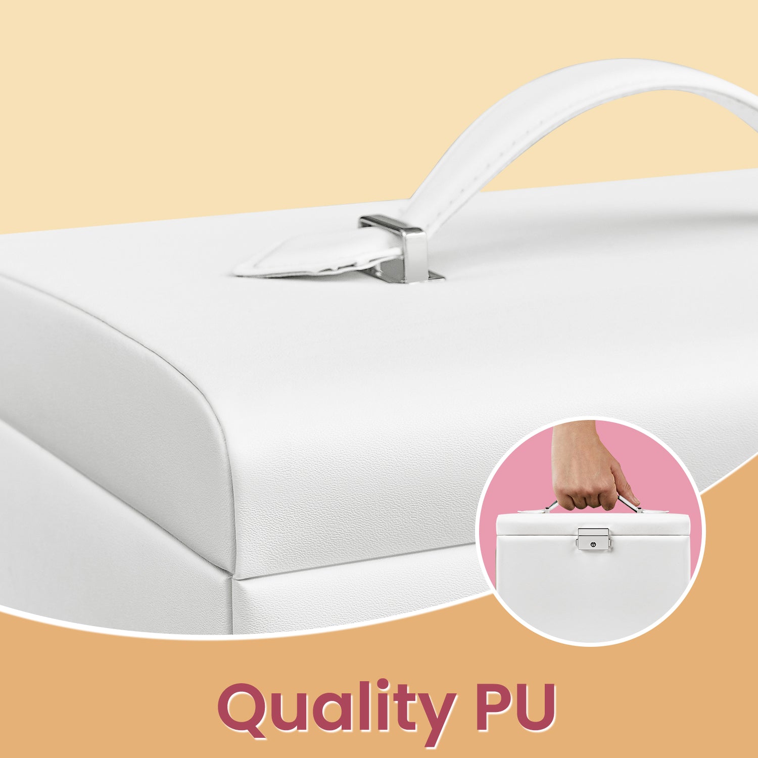 4-Tier Jewelry Organizer with Lock, Travel Jewelry Case with Mirror & 3 Drawers, Velvet-Lined Storage Box, Gift for Women, White