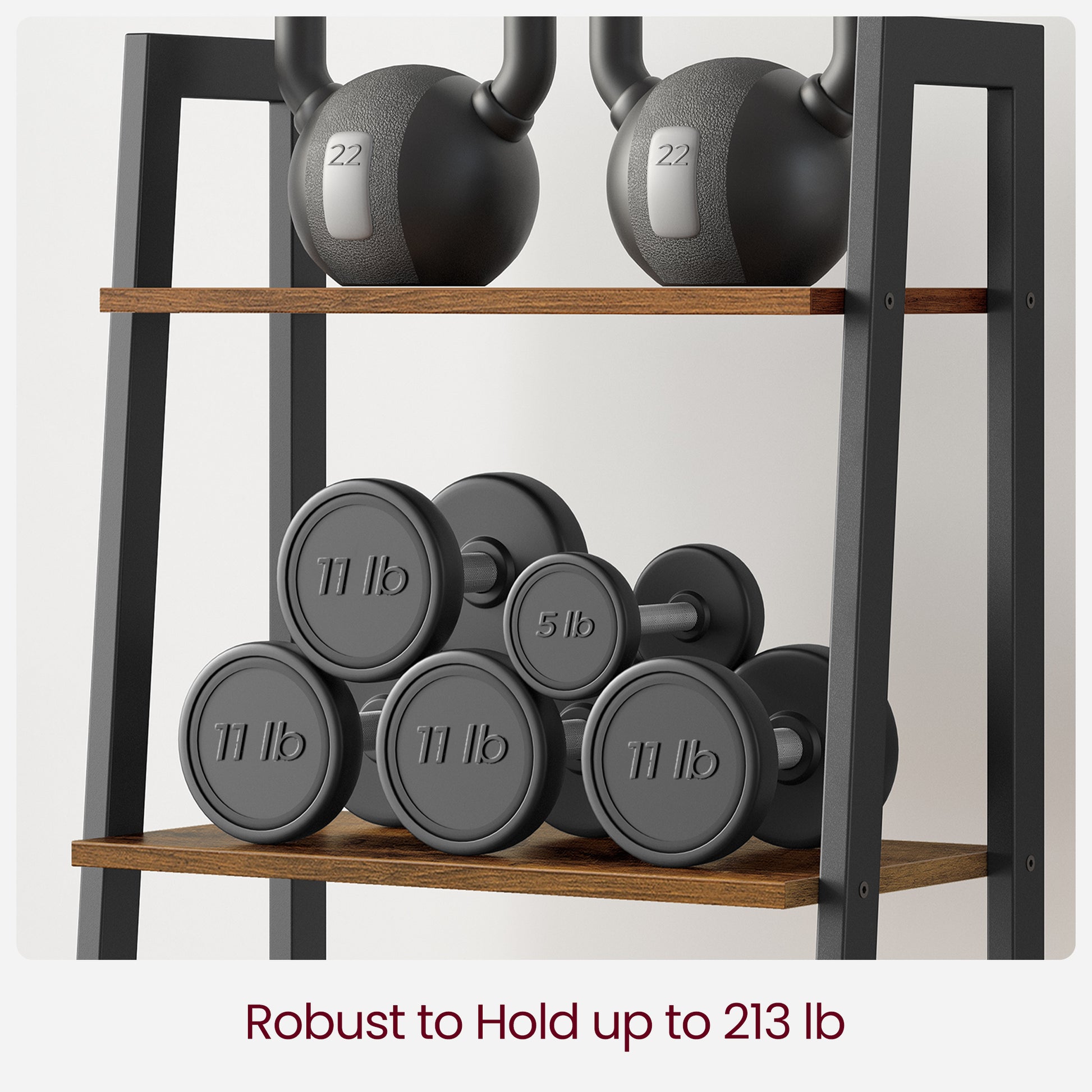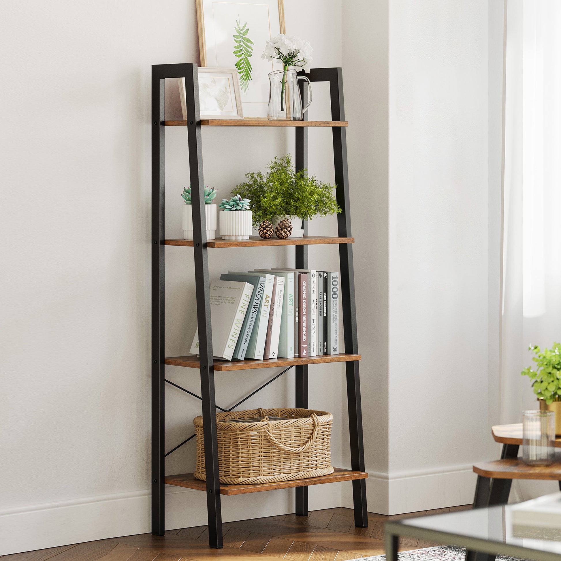 4-Tier Ladder Shelf - Heavy Duty Steel Frame, Multi-Purpose Storage Rack for Home, Office, Easy Assembly, Rustic Brown and Black