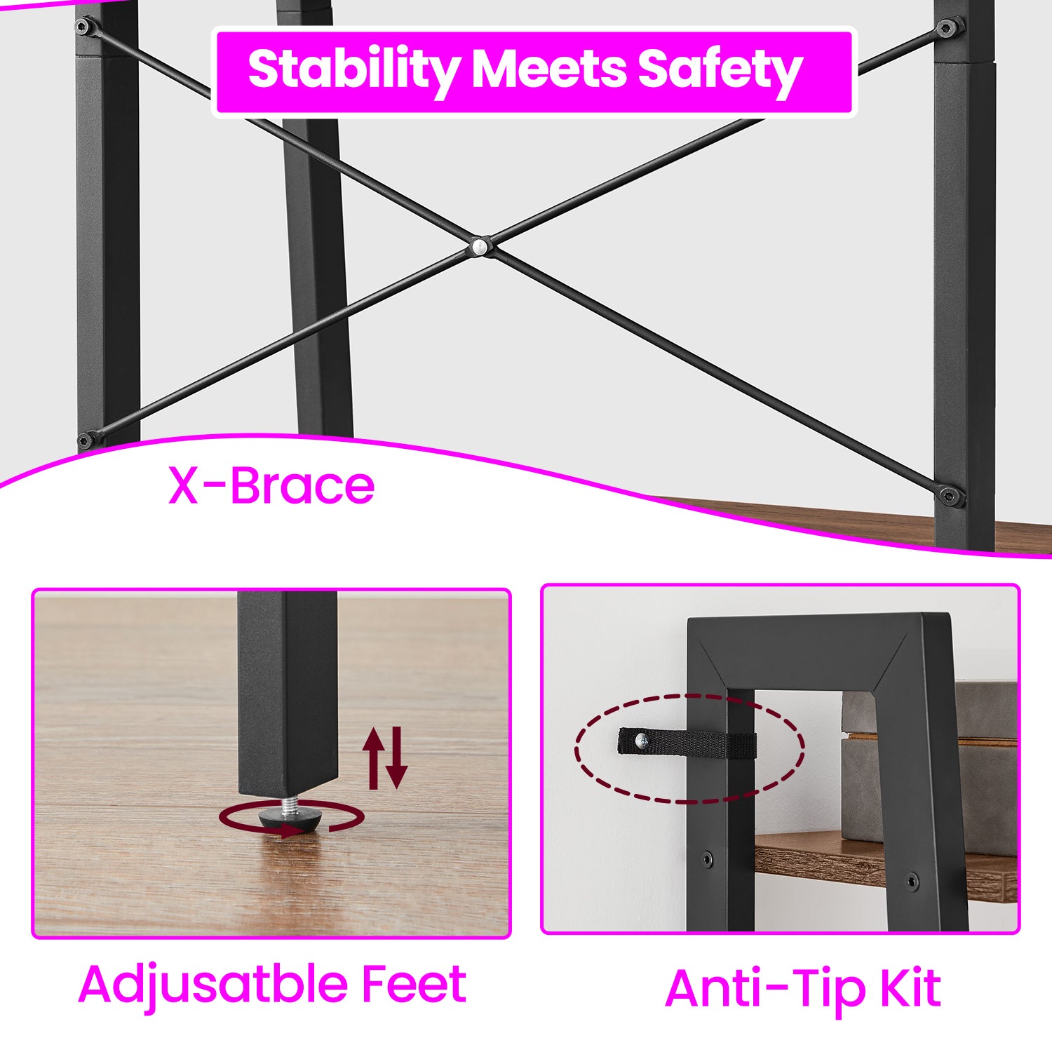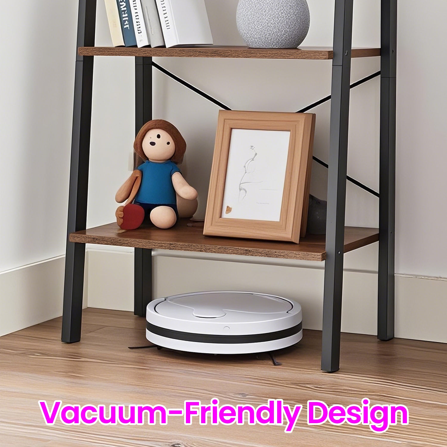 4-Tier Ladder Shelf - Industrial Steel Frame Bookcase, Multi-Purpose Storage Rack for Living Room, Office, Bedroom, Hazelnut Brown and Ink Black