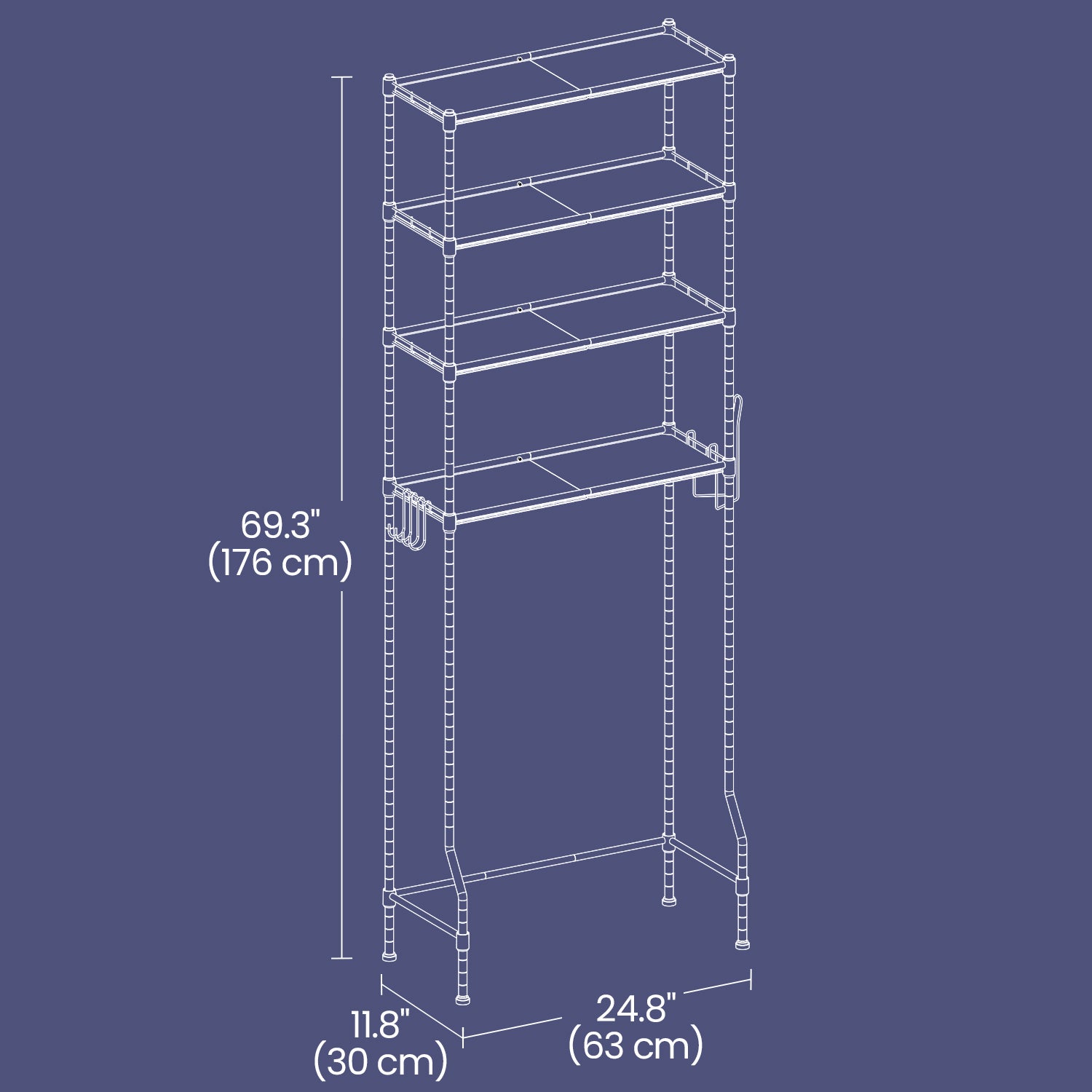 4-Tier Over-The-Toilet Storage Shelf with Adjustable Shelves & Hooks, Space-Saving Bathroom Organizer with Roll Holder, Black
