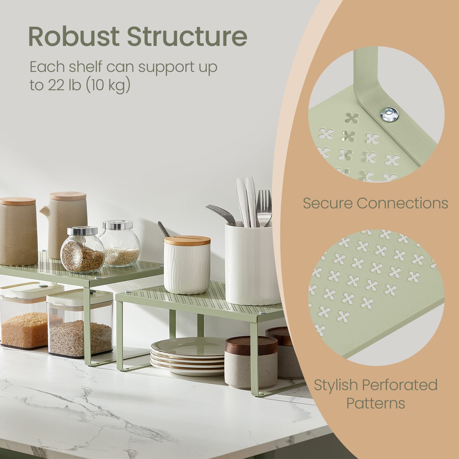 4-Tier Stackable Spice Rack Organizer - Space Saving Cabinet & Countertop Shelves, Heavy Duty 22lb Capacity, Adjustable, Sage Green