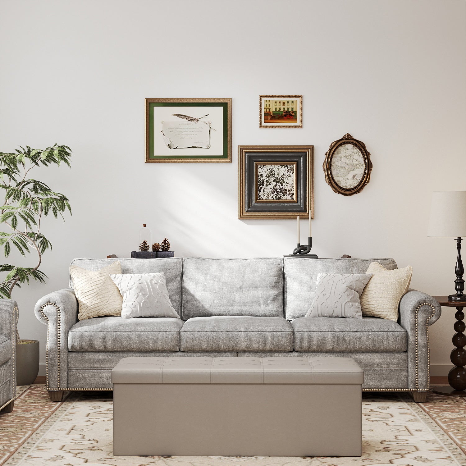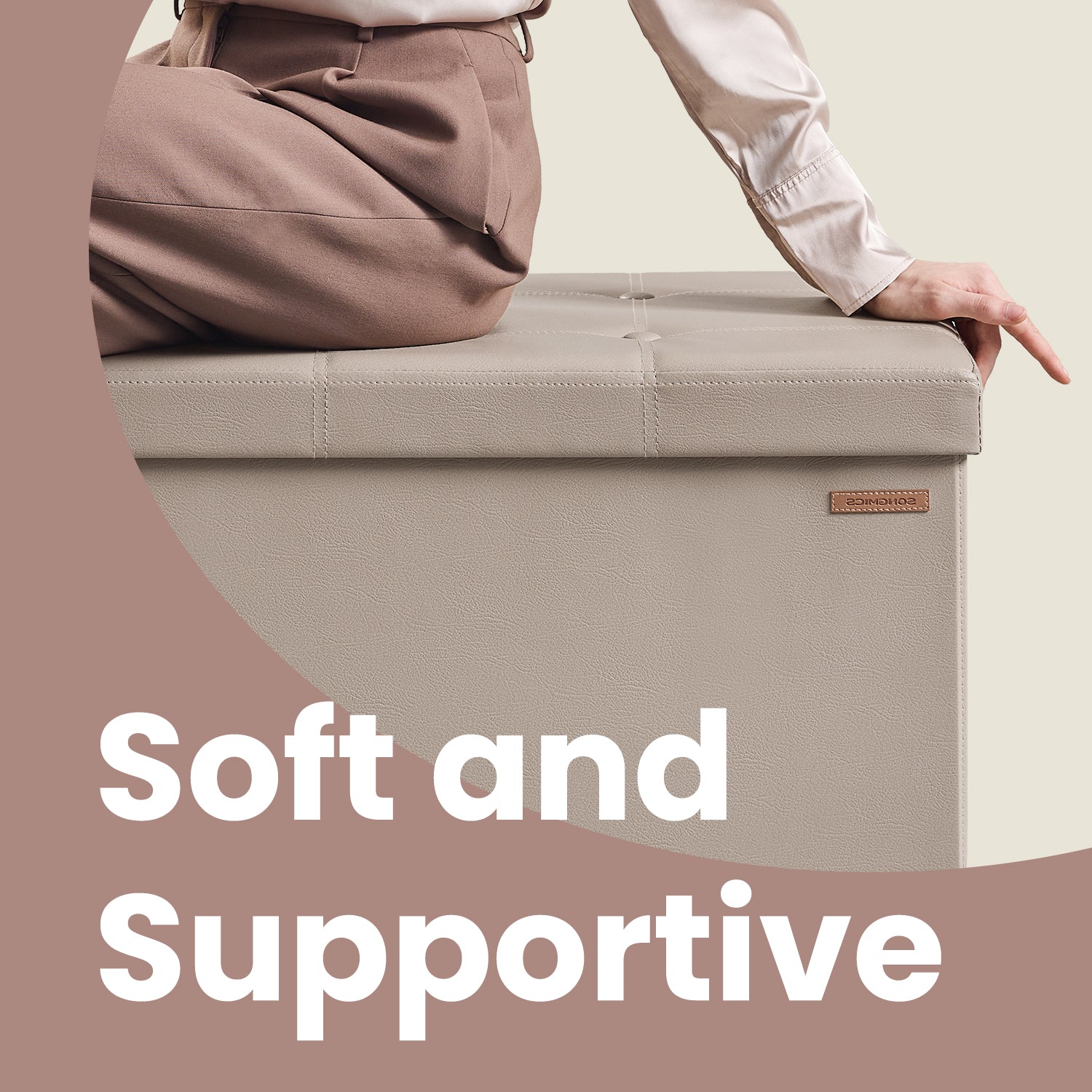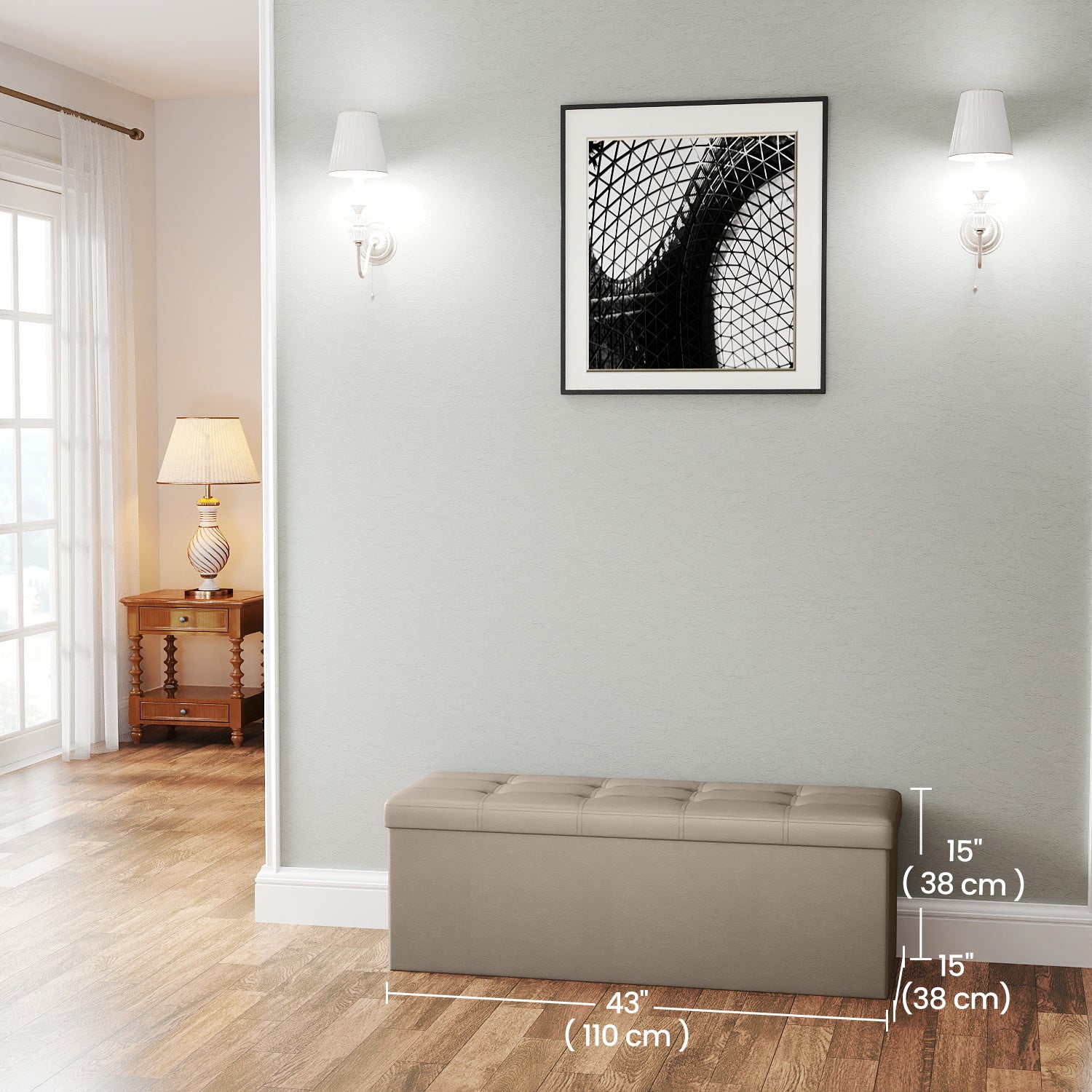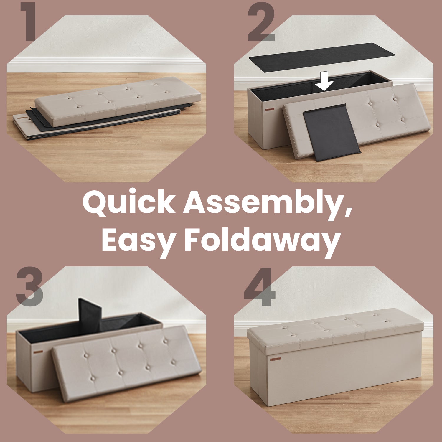 43" Foldable Storage Ottoman Bench, 660 lb Capacity, Sturdy MDF Frame, Multi-Purpose Footrest & Seat, 35 Gal Storage Space, Camel Brown