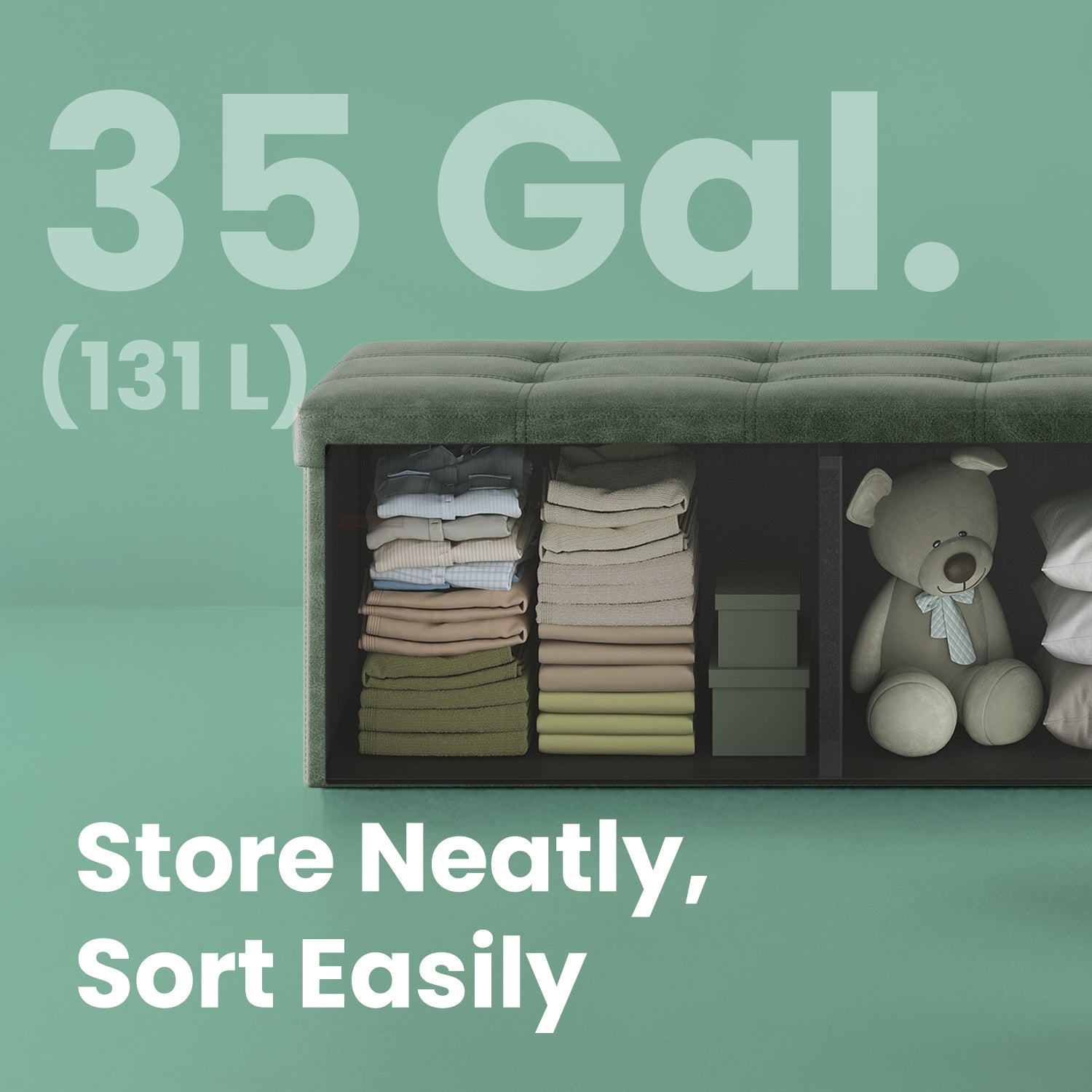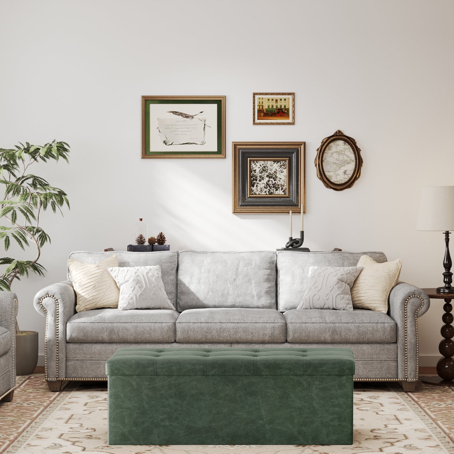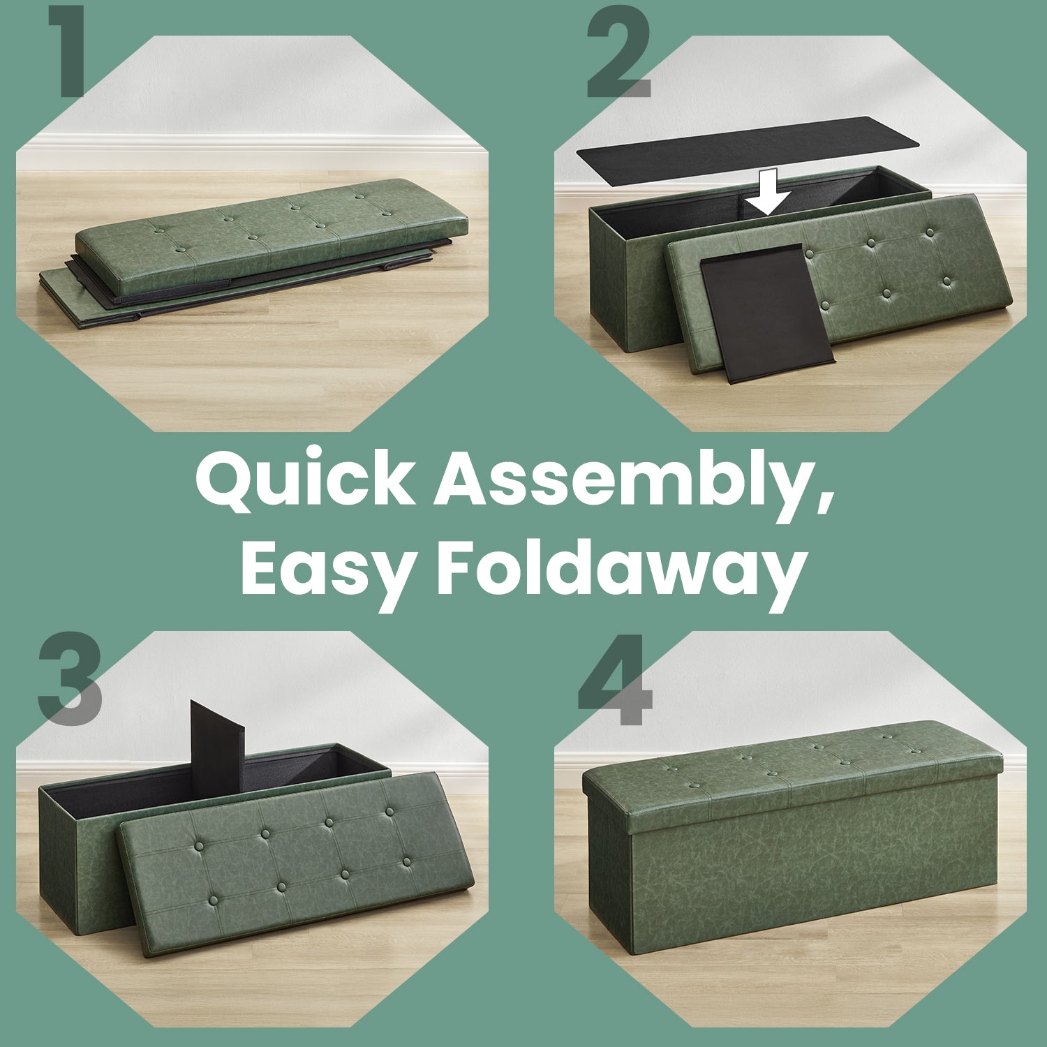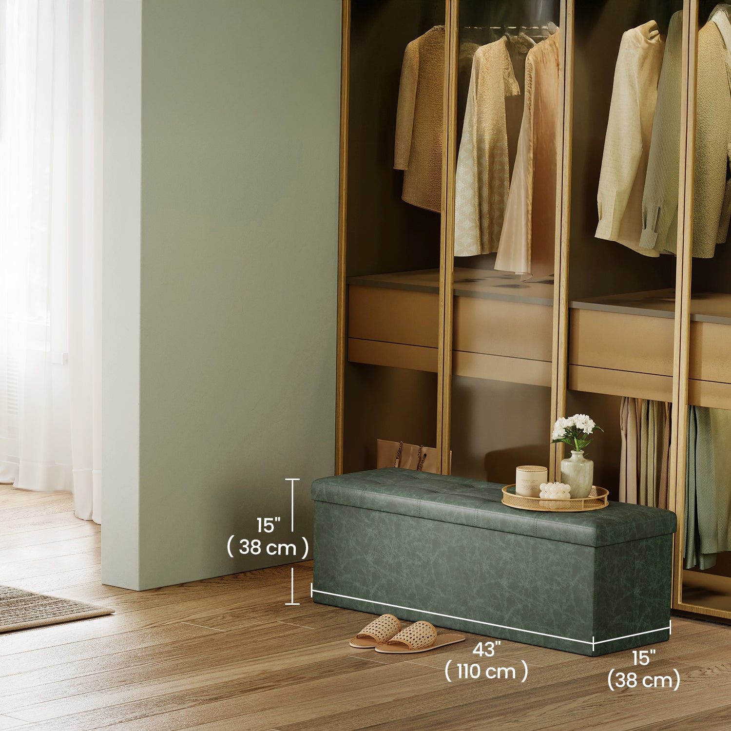 43" Foldable Storage Ottoman Bench, 660lb Capacity, Multifunctional Footrest Stool, Quick Assembly, Synthetic Leather, Forest Green