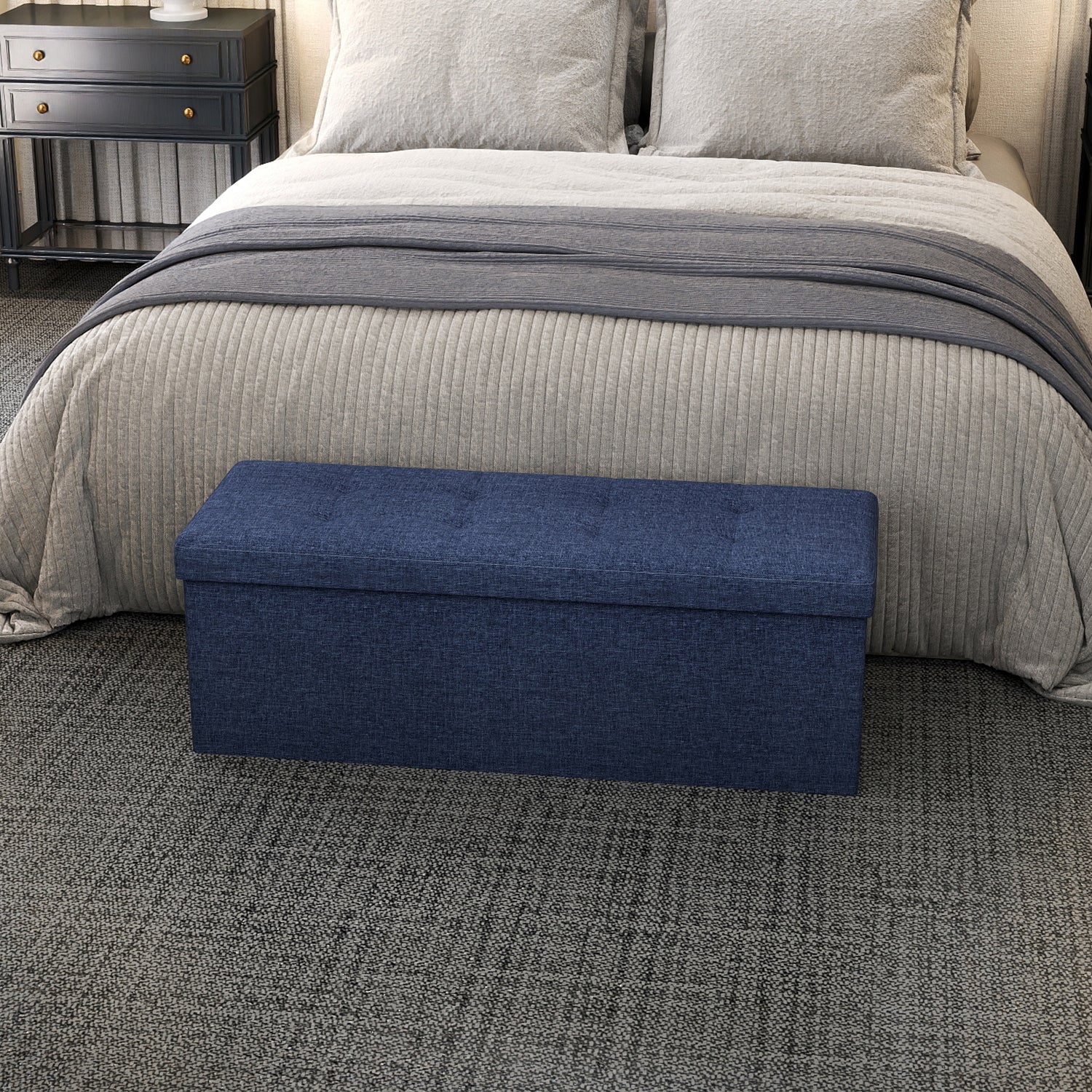 43" Foldable Storage Ottoman Bench, 660lb Capacity, Tufted Linen-Look, Multi-Functional Footrest, Seat, Coffee Table, for Living Room, Bedroom, Midnight Blue