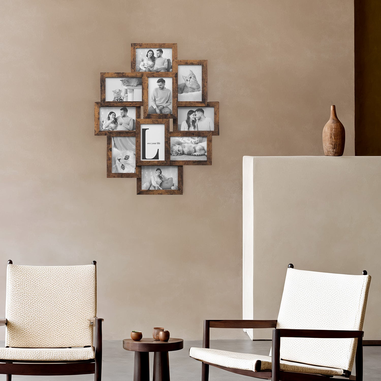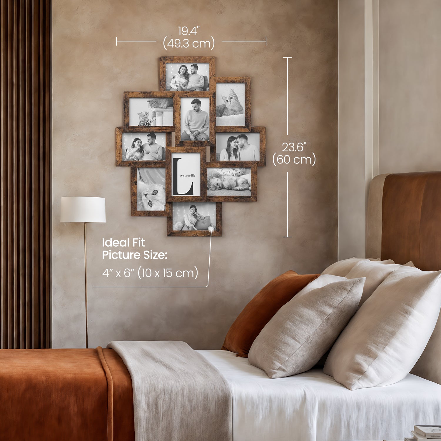 4x6 Wall Collage Picture Frame Set, 10 Pack Gallery Photo Frames with Glass Front, Easy Assembly for Home, Office Decor, Rustic Brown