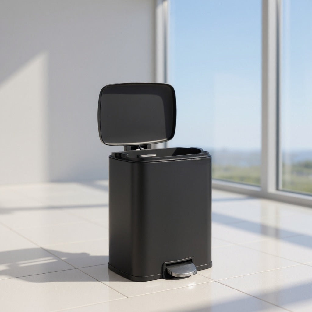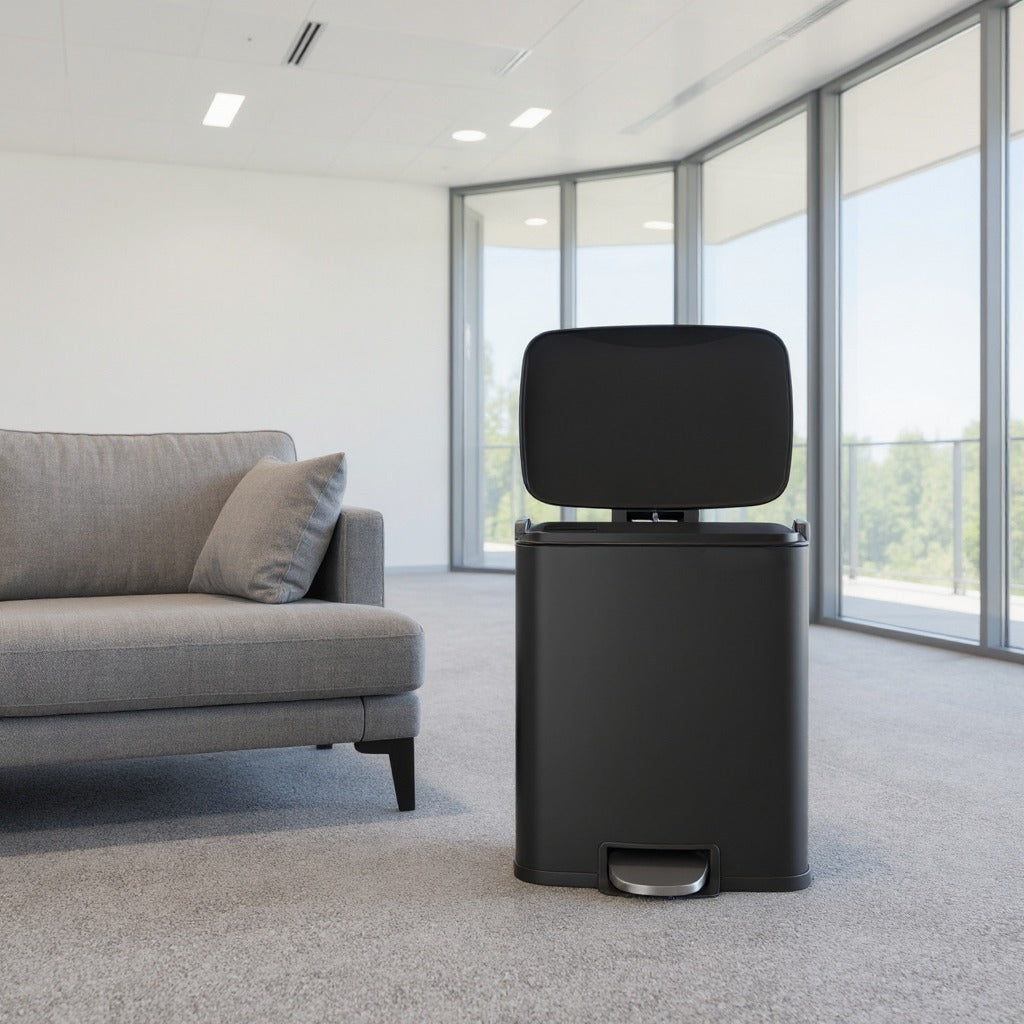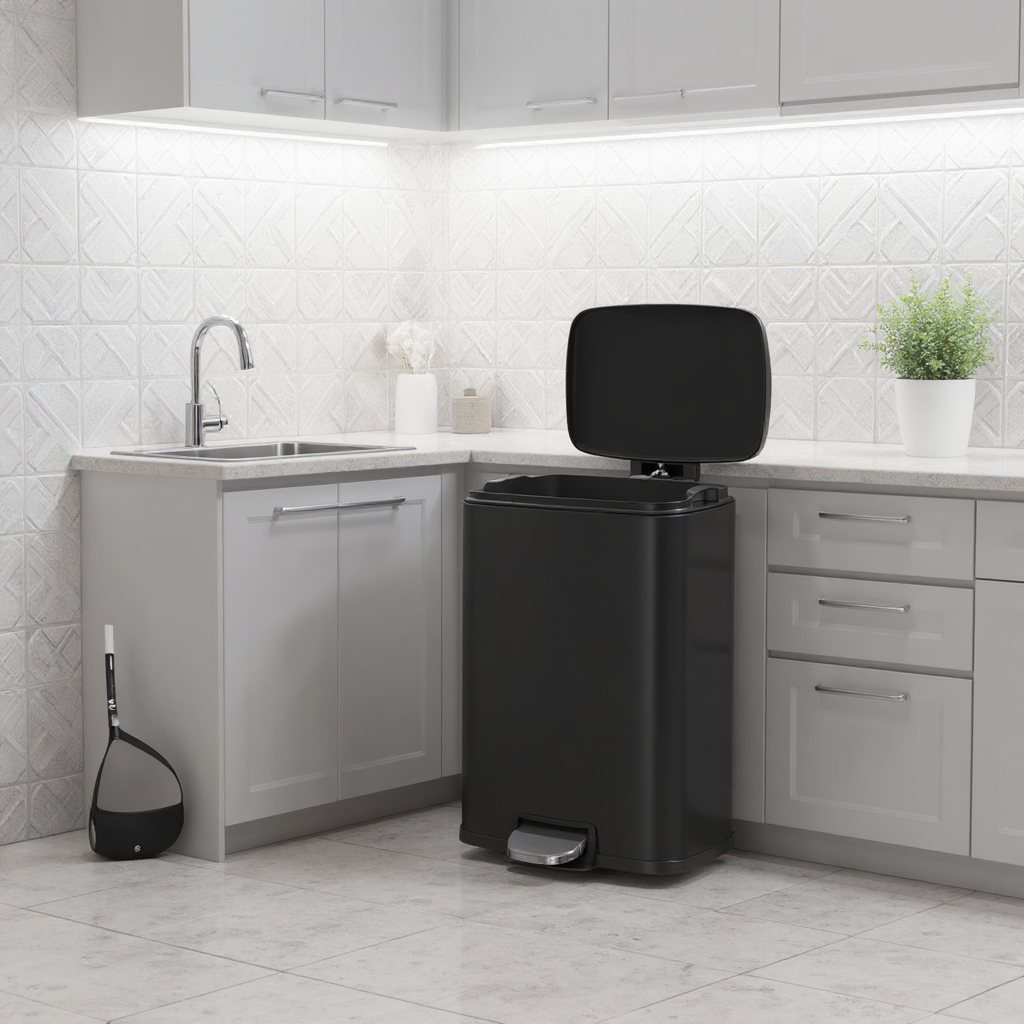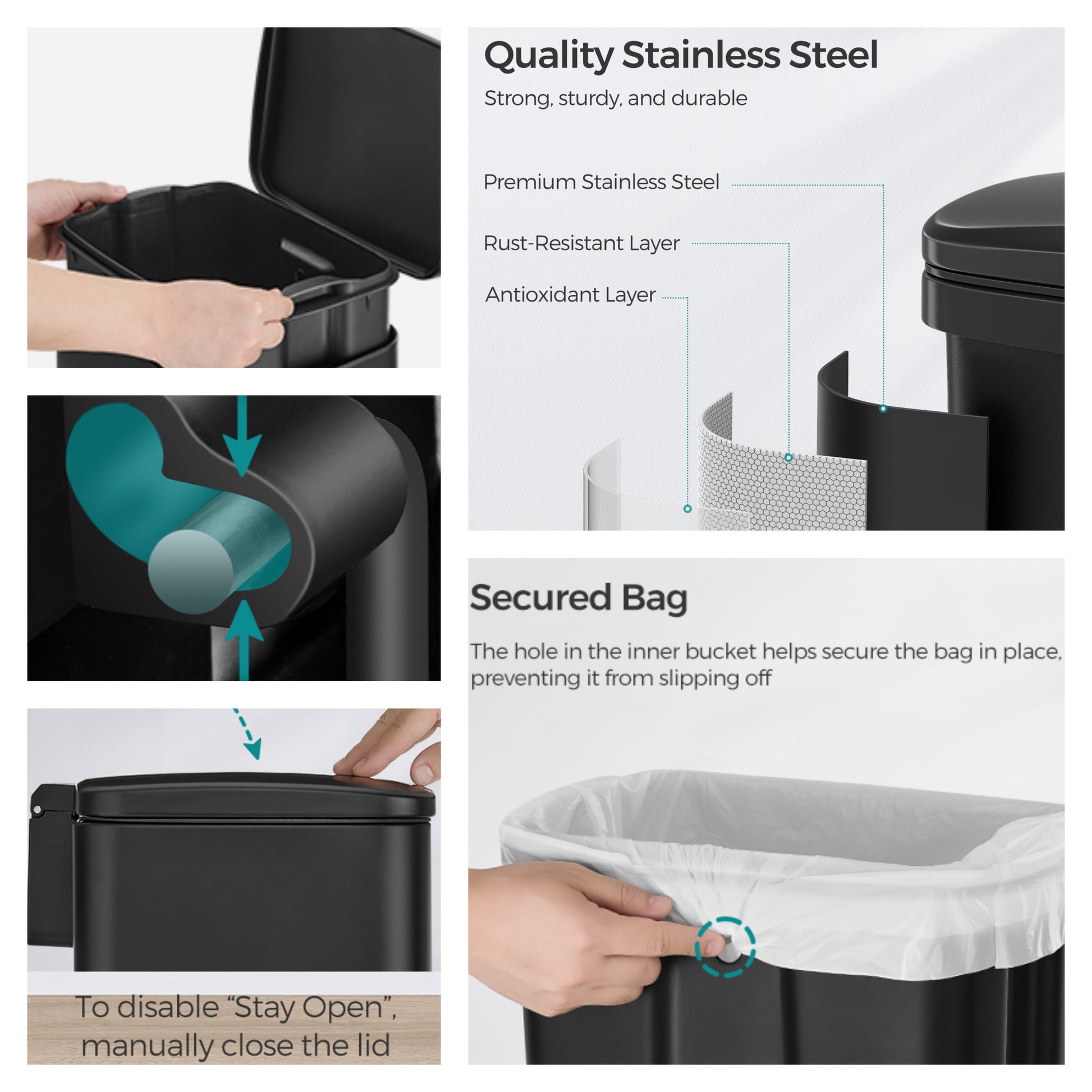 5.2-Gallon Step Kitchen Trash Can, Soft-Close Stay-Open Lid, Inner Bucket, Includes 15 Liners, Compact Stainless Steel Bin,Black