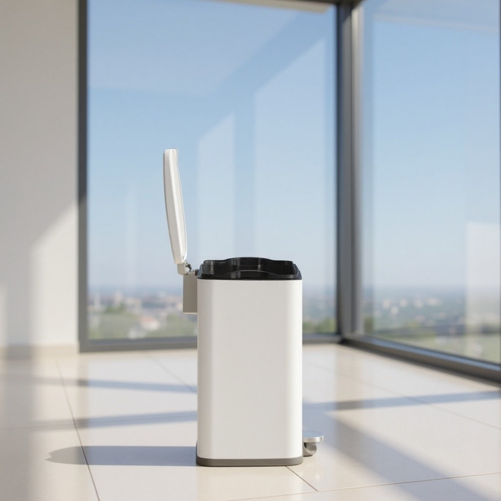 5.2-Gallon Step Kitchen Trash Can, Soft-Close Stay-Open Lid, Inner Bucket, Includes 15 Liners, Compact Stainless Steel Bin,White