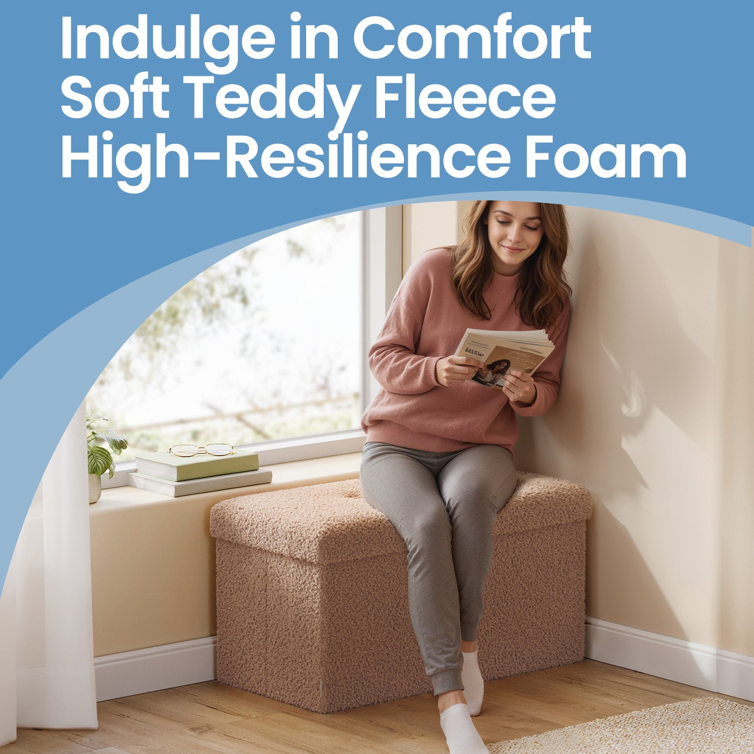 5-in-1 Storage Ottoman Bench - 660lb Capacity, 24-Gal Storage, Foldable, Multi-Functional Footrest or Seat, Camel Brown