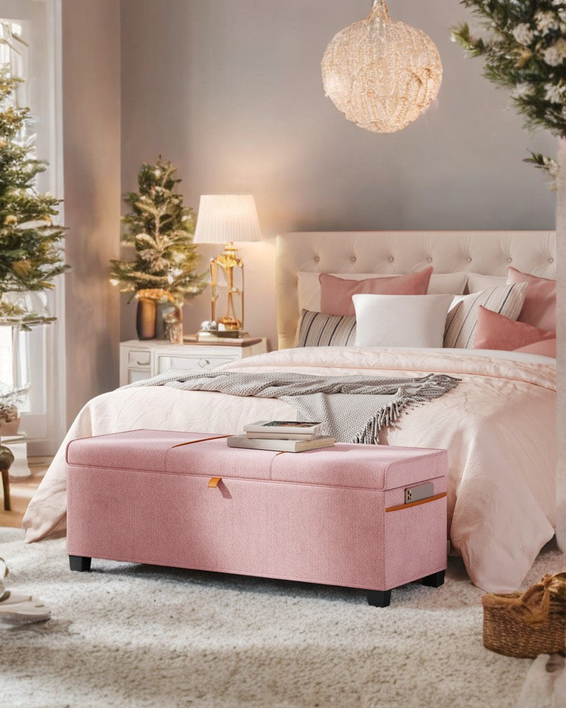 5-in-1 Storage Ottoman Bench - 660lb Capacity, 27-Gal Storage, Safety Hinges, Multi-Functional, Jelly Pink